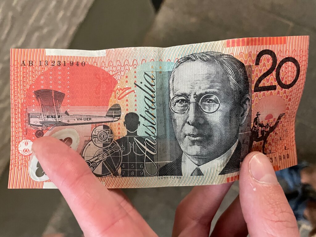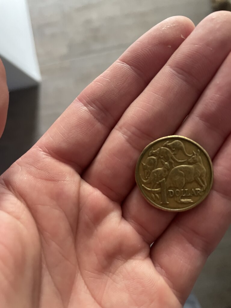 I got my first physical cash the other day – the $20 was getting my hostel deposit returned, and the coin was part of a tip I got from bartending a wedding reception. I love the kangaroos on the $1 coin!