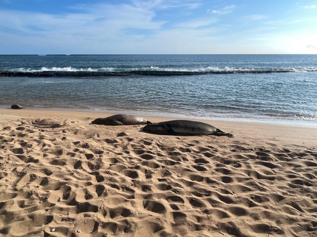 Stopping for poke & rice, we then drove down to our final spot of the evening. Upon our arrival, I saw a small portion of the beach sectioned off. “I think it’s…” I started to say, and then got the first glimpse of them. The endangered Hawaiian monk seals. Two of them. “One for you, one for me.” Nearly three months in Maui, and Nerea had not yet seen them. We embraced and I noted tears shedding down her cheek. I love seeing others so passionate about wildlife!