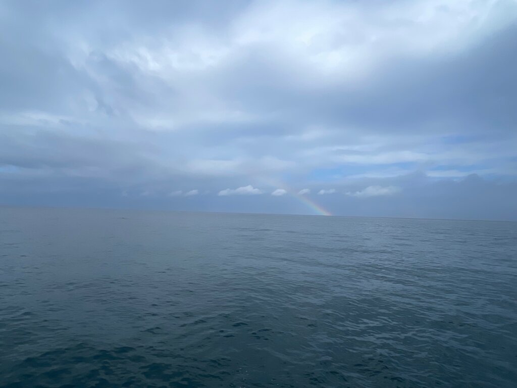 Along the way, we were pleased to see SPINNER DOLPHINS! Like the dolphins I’d seen on a cruise in Alaska, these guys were following along the boat. Similarly to the monk seals, Nerea had never seen dolphins before. (Well, once before about a week ago. I was with her then, too! But they were off in the distance, leaping/spinning out of the water). Now, she REALLY got a show. They were so close and stuck with us for quite some time. It was really special. Nerea has always loved dolphins, and even in grade school, she was in the “dolphin” group in her class. I felt lucky to be with her while she experienced dolphin viewing for the first time. Yay! (Bonus: there was also a rainbow!)