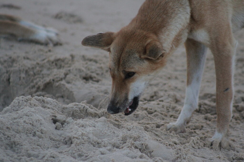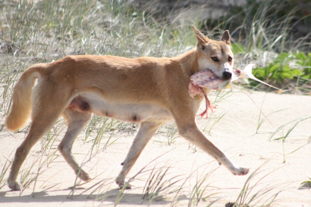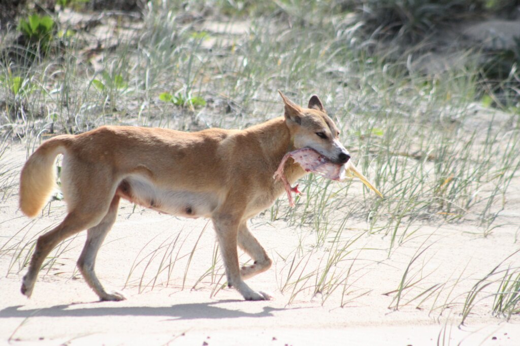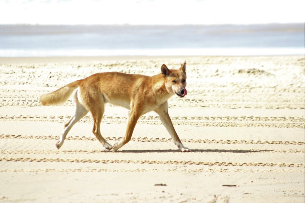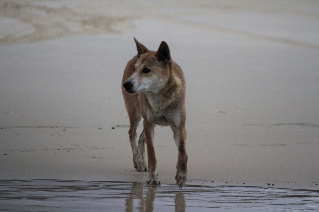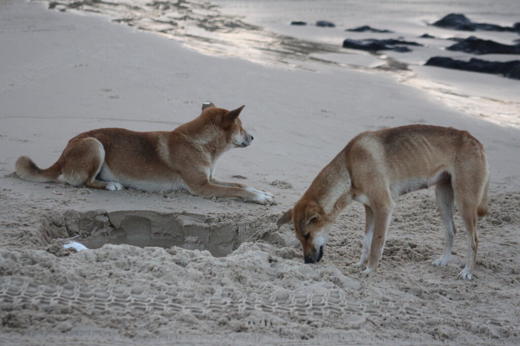 Dingoes patrol the beach. It is actually a pretty smart tactic, considering they are living on an island and the other animals can only venture so far before running into a dingo.