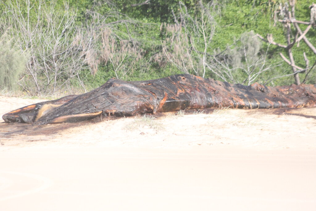 Near the shipwreck, there is a somewhat recent dead whale carcass. We weren’t able to get too close to it as it’s in a brutal state of decay at this point. There was a discussion about whether to put the whale back in the sea since it would provide food and sustenance for other marine life but the Aboriginal representatives of K’gari decided that it should be pushed higher up on the island – for the dingoes and other wildlife.