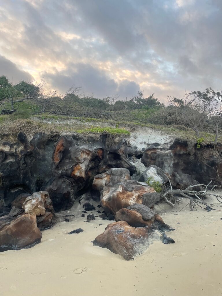Before we got back in our cars, B asked us if we could spend ten minutes picking up rubbish off the beach. Unfortunately, K’gari bears the brunt of a lot of litter coming in from the ocean. All over the beach there were microplastics disguised in the sand. Occasionally, a plastic crate on the beach or a piece of a small, playground slide. We all did this without question, happy to help clean up the beautiful island. I was quite impressed they integrated that activity into the tour. SAVE THE WORLD! Although, I think it is likely too late.