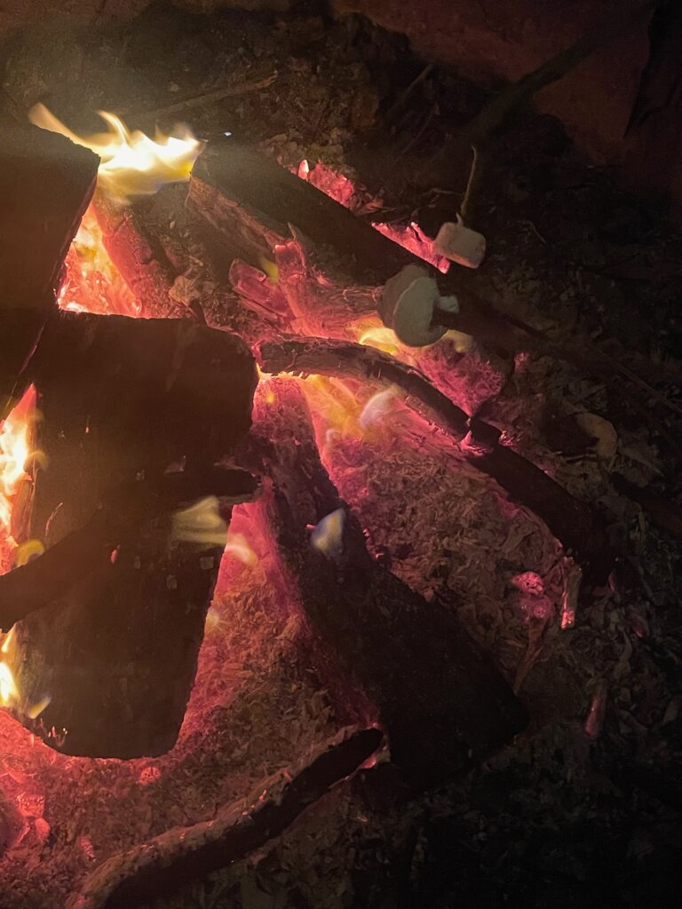 We all ate dinner together and then sat around the campfire. Emily and Eimear had brought marshmallows. I think someone else had provided chocolate and crackers. Some of the people had never had s’mores before so it was cute to see them experiencing that for the first time. The experience reminded me of my childhood, summer vacations in Wisconsin.