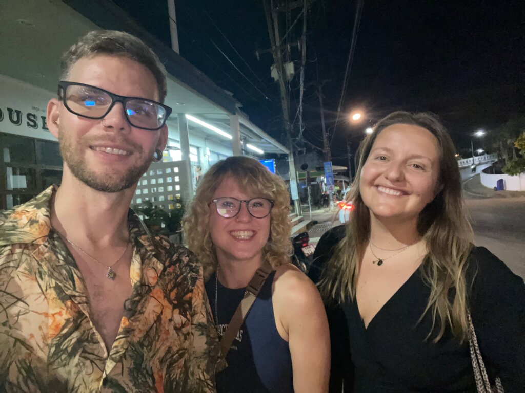 Our group went somewhere quieter to chat for a while longer. Nico went to bed and maybe ten minutes later, I followed suit. I thought maybe sleep would be awful, with the noise of the creaking floorboards and the bungalow rocking with the waves but it ended up being fine. More than anything, the mat and pillow were very rough (a common trend in Thailand apparently), making for a sore neck in the morning.