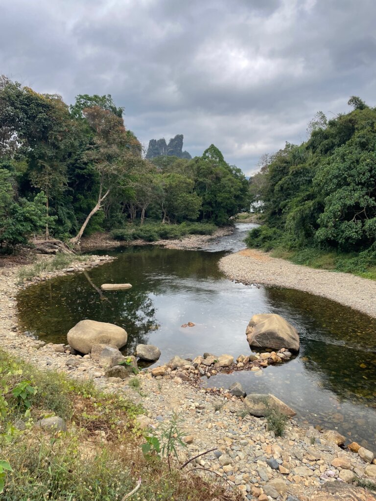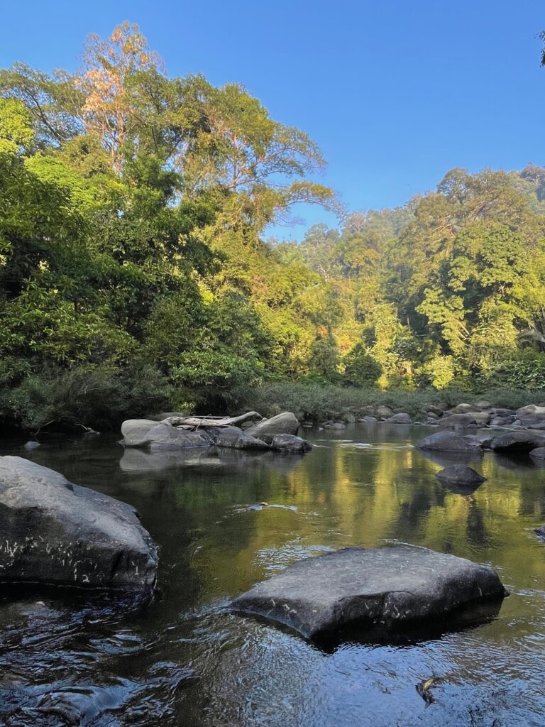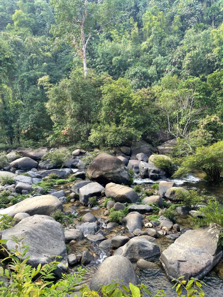 After maybe an hour, we arrived at what was supposed to be the waterfall. I have no idea where it was, but we’d reached the end of the trail haha. I imagine the river looks a bit different in wet season, with the river flowing more heavily. Even small rocks (which there were a lot of) could help drive a cascade.