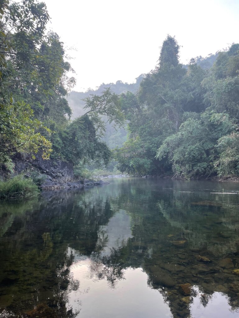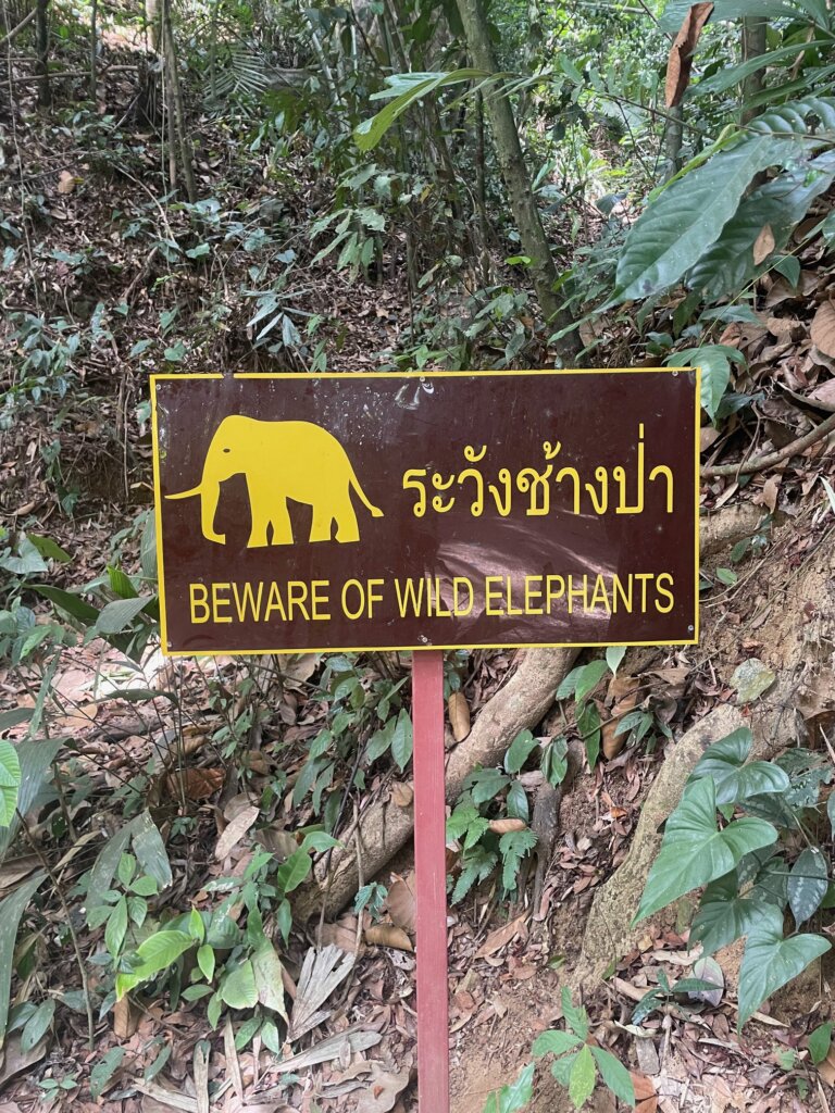As the sun started to quietly spill over the horizon, I noticed the macaques and langurs stirring in the trees. Maybe 30min into my walk, I spotted what I am 95% sure were two gibbons, passing through the trees high up in the canopy. They were very far away and quite masked by the dense jungle – nowhere near the close sightings I’d had at Khao Yai. Still, by the time I reached the end of the self-guided trail, I could hear faraway gibbons singing their morning songs. So wonderful.