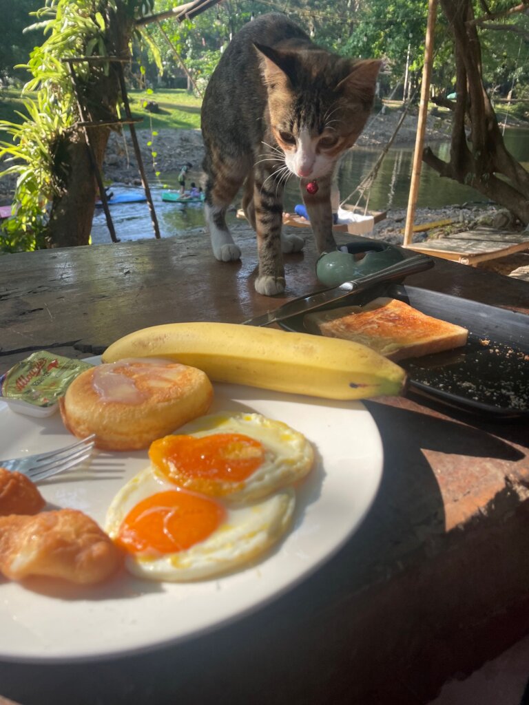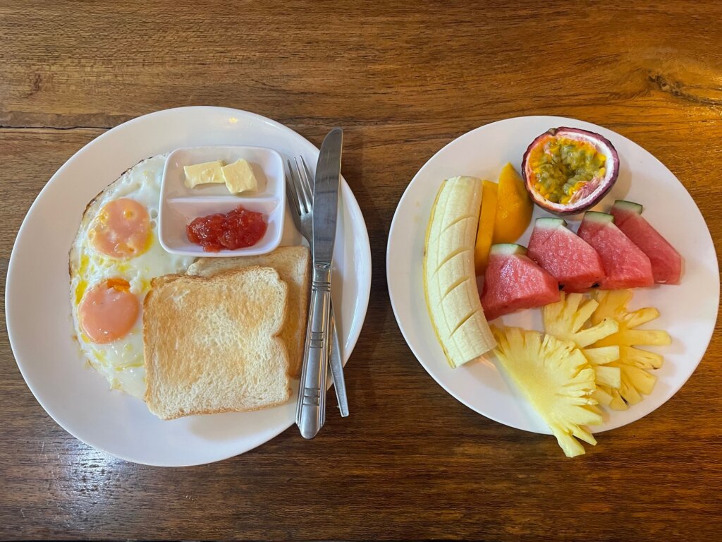 While leaving Khao Sok, I was given a complimentary HUGE breakfast. While doing laundry, the staff accidentally lost one of my beloved socks. It wasn’t a big deal but they scrambled to come up with a solution, offering to give me back some money. No way, I said. It’s not a big deal. The compromise was a free breakfast which was nice!