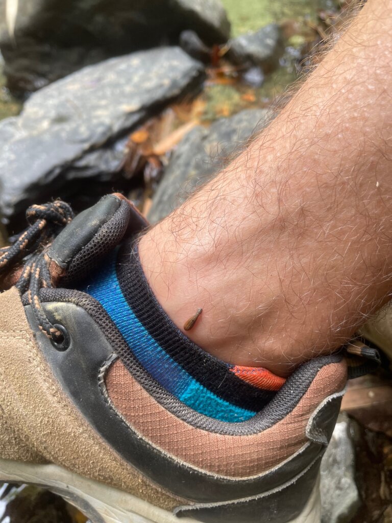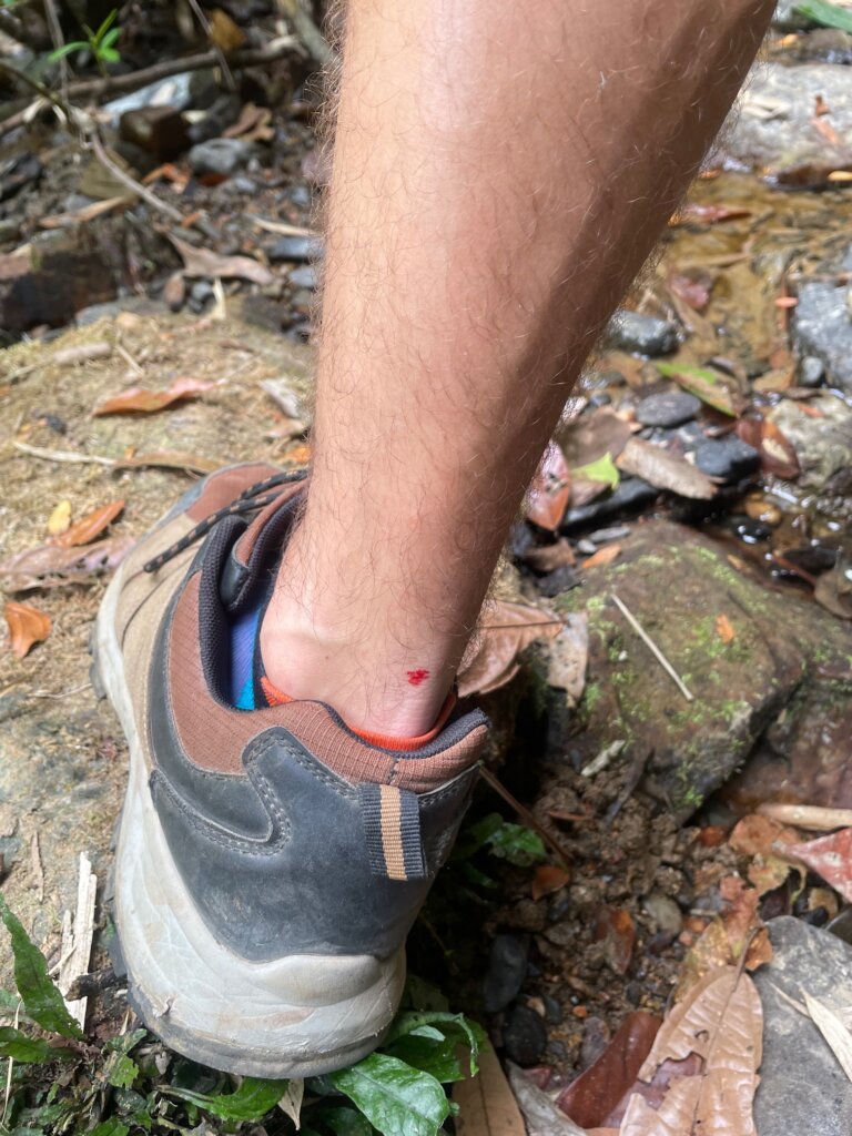 Well, maybe two minutes later, I realized another one had locked onto the back of my other ankle. THAT guy got me. Again, Nico removed it. There was a spot of blood, but not bad at all. The leech attacks signaled our time to return. (As a funny aside, I had a nightmare that night where I saw I had leeches on me. I then lifted my shirt to look down at my stomach and had dozens sucking my blood. Yikes lol.)