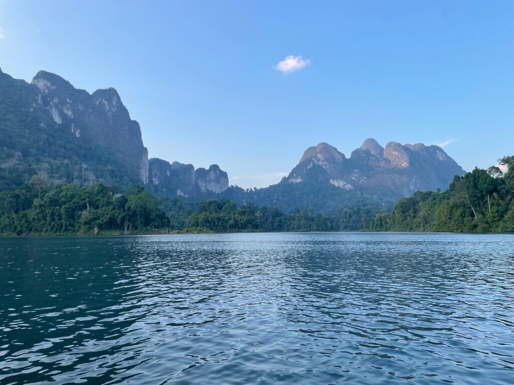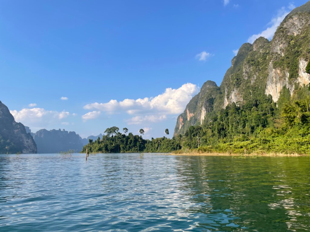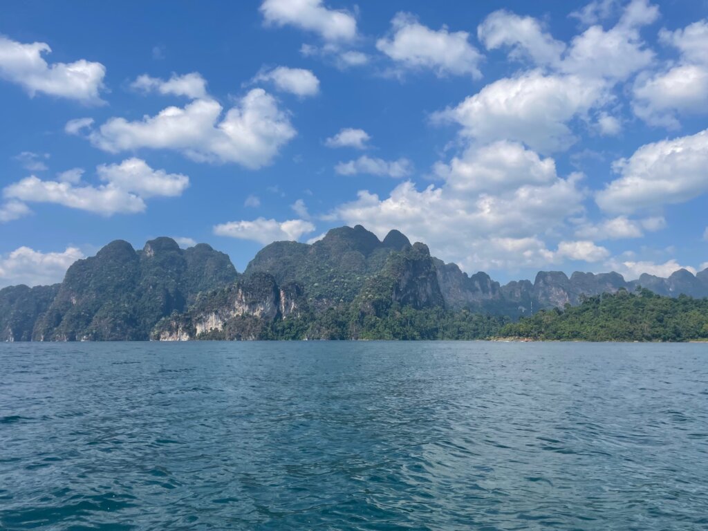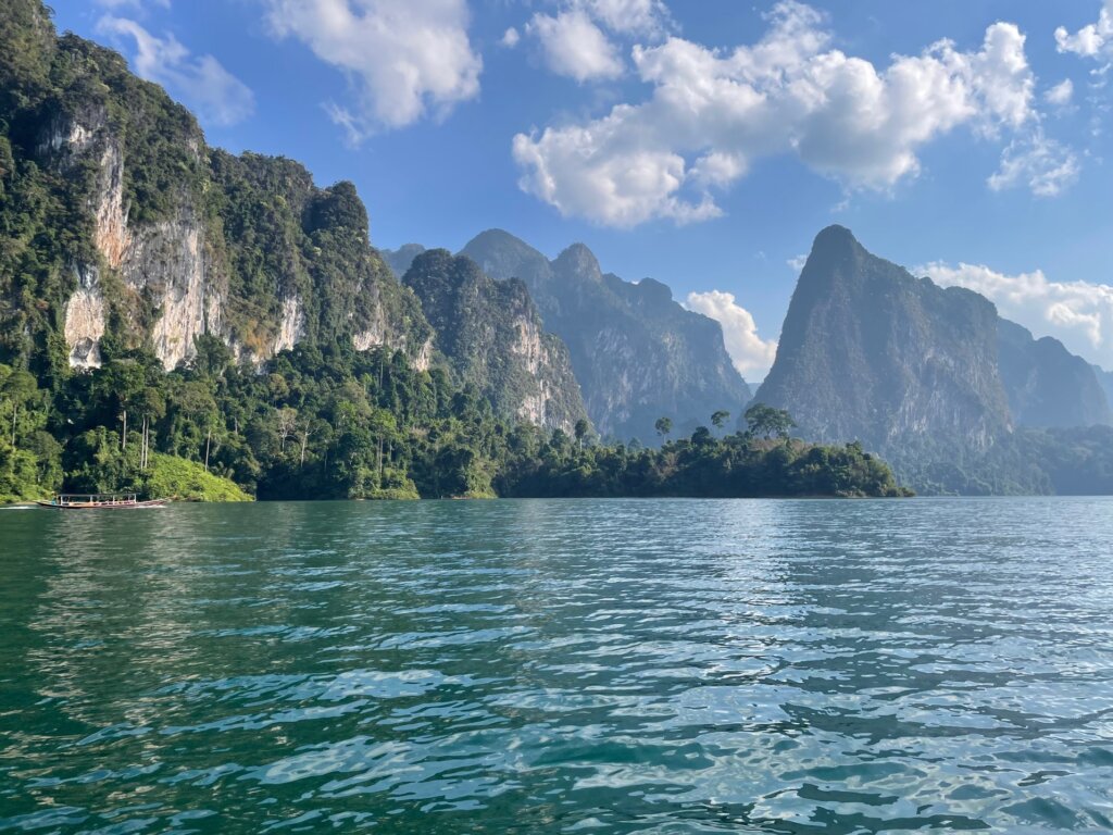 Before noon, we were on our longtail boat riding along Cheow Lan Lake. And quite a massive lake it was! As we got further from the roads and deeper into the lake, the scenery morphed into something truly imperessive. If Milford Sound and Lan Ha Bay had a baby, this would be it. Beautiful karst formations fought for superiority. Everywhere I looked, I wanted to take a photo.