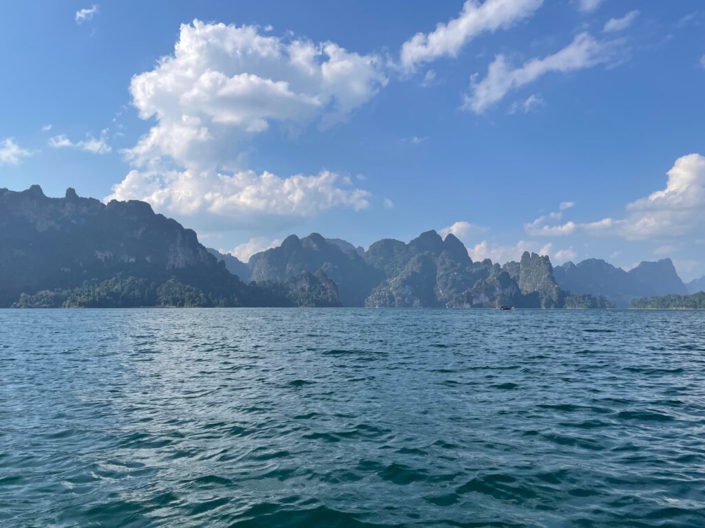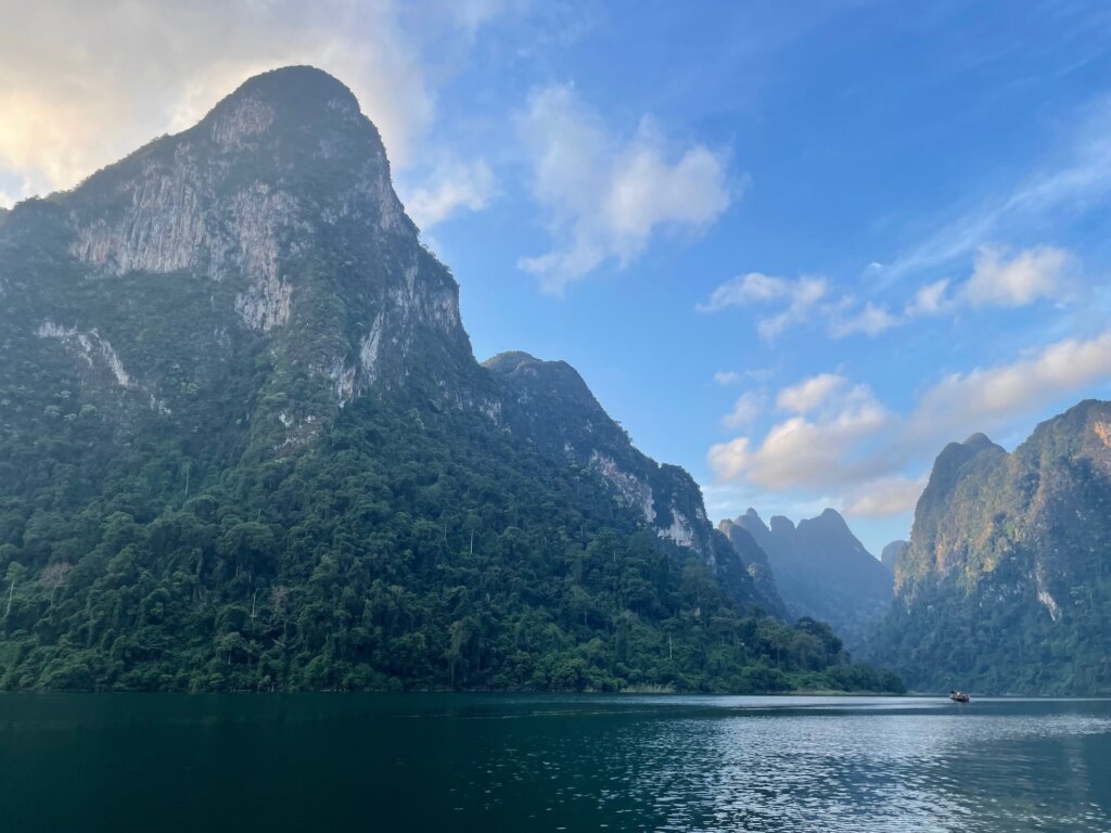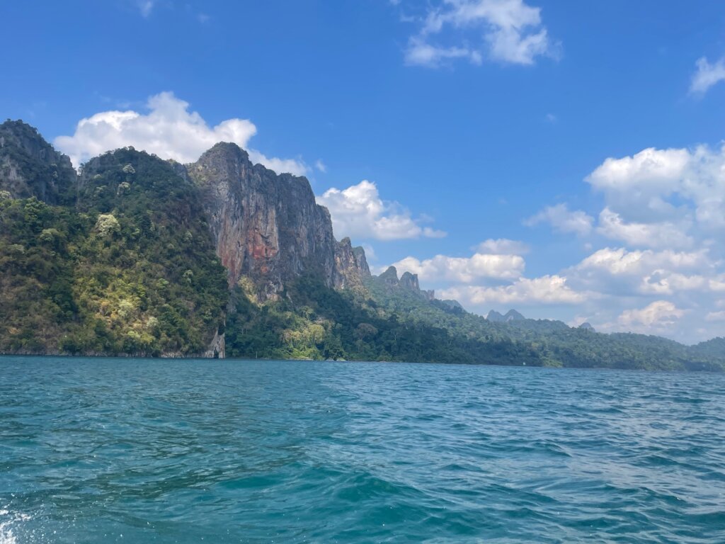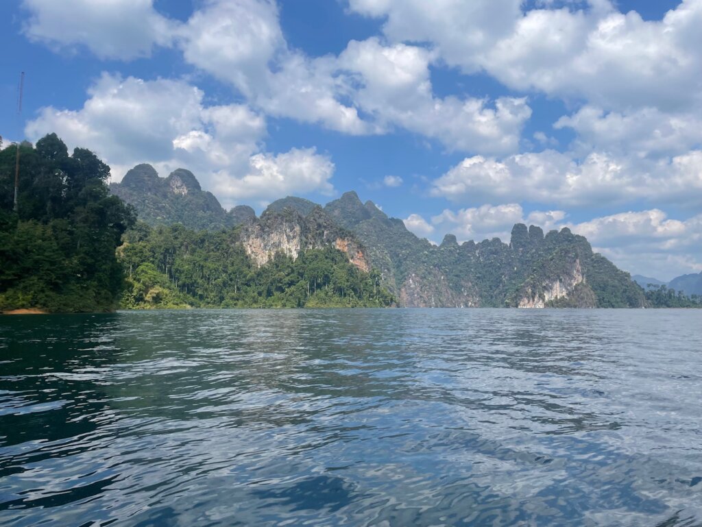 Before noon, we were on our longtail boat riding along Cheow Lan Lake. And quite a massive lake it was! As we got further from the roads and deeper into the lake, the scenery morphed into something truly imperessive. If Milford Sound and Lan Ha Bay had a baby, this would be it. Beautiful karst formations fought for superiority. Everywhere I looked, I wanted to take a photo.