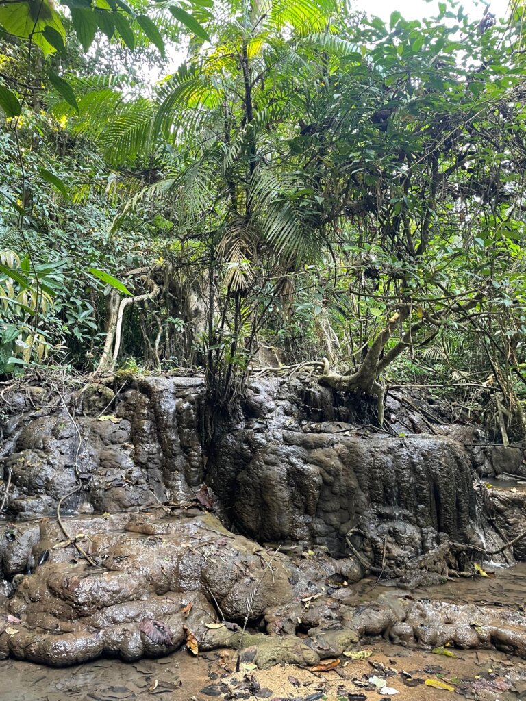 The trail to the “waterfall” was not difficult but was technical at times. We had to duck under large branches, climb over fallen trees, occasional small sections of climbing, etc. There was nobody else on the trail whatsoever. We saw butterflies and dragonflies. Nico spotted a flying lizard, something I haven’t seen since Malaysia.