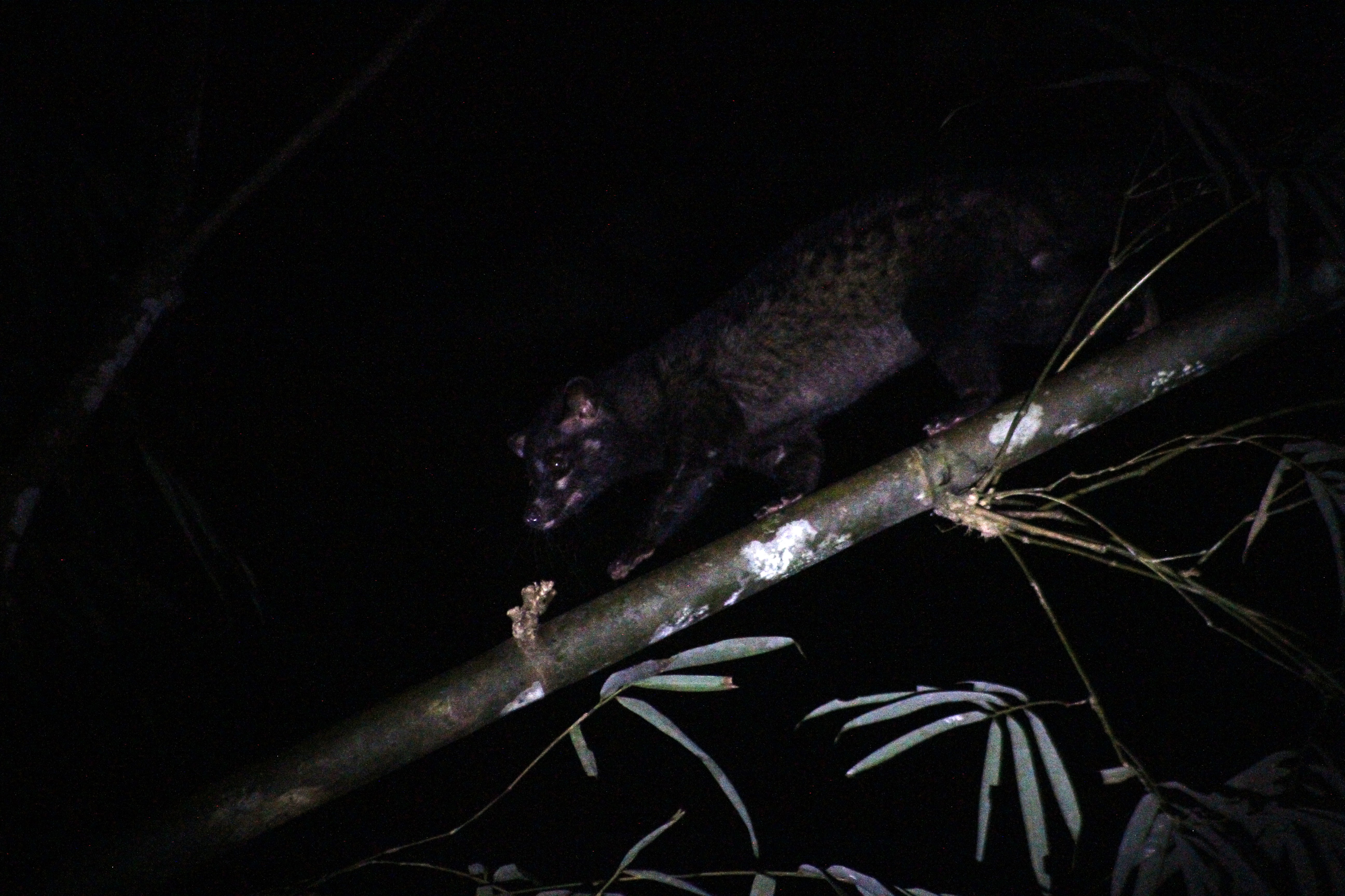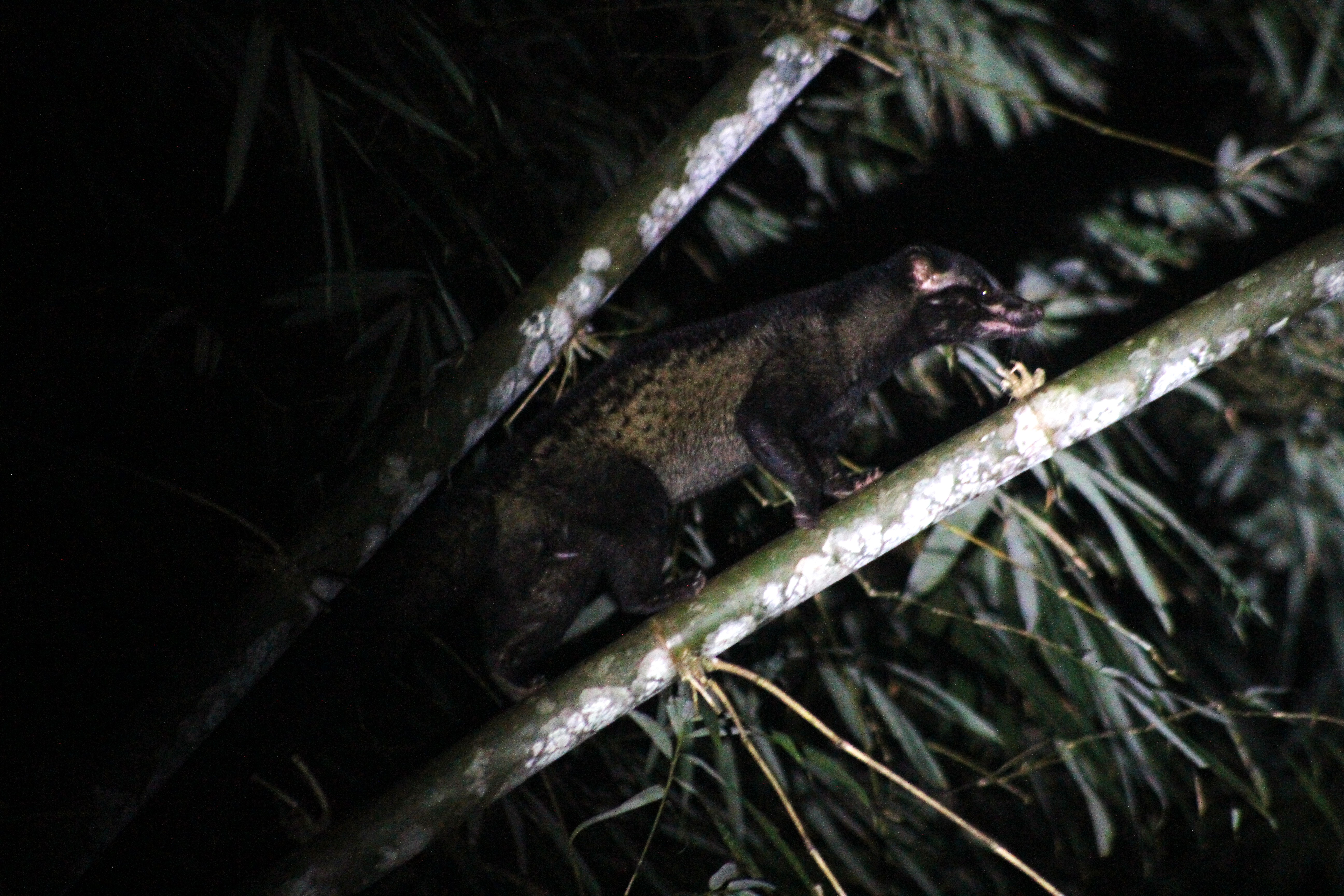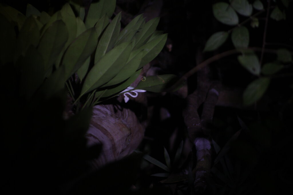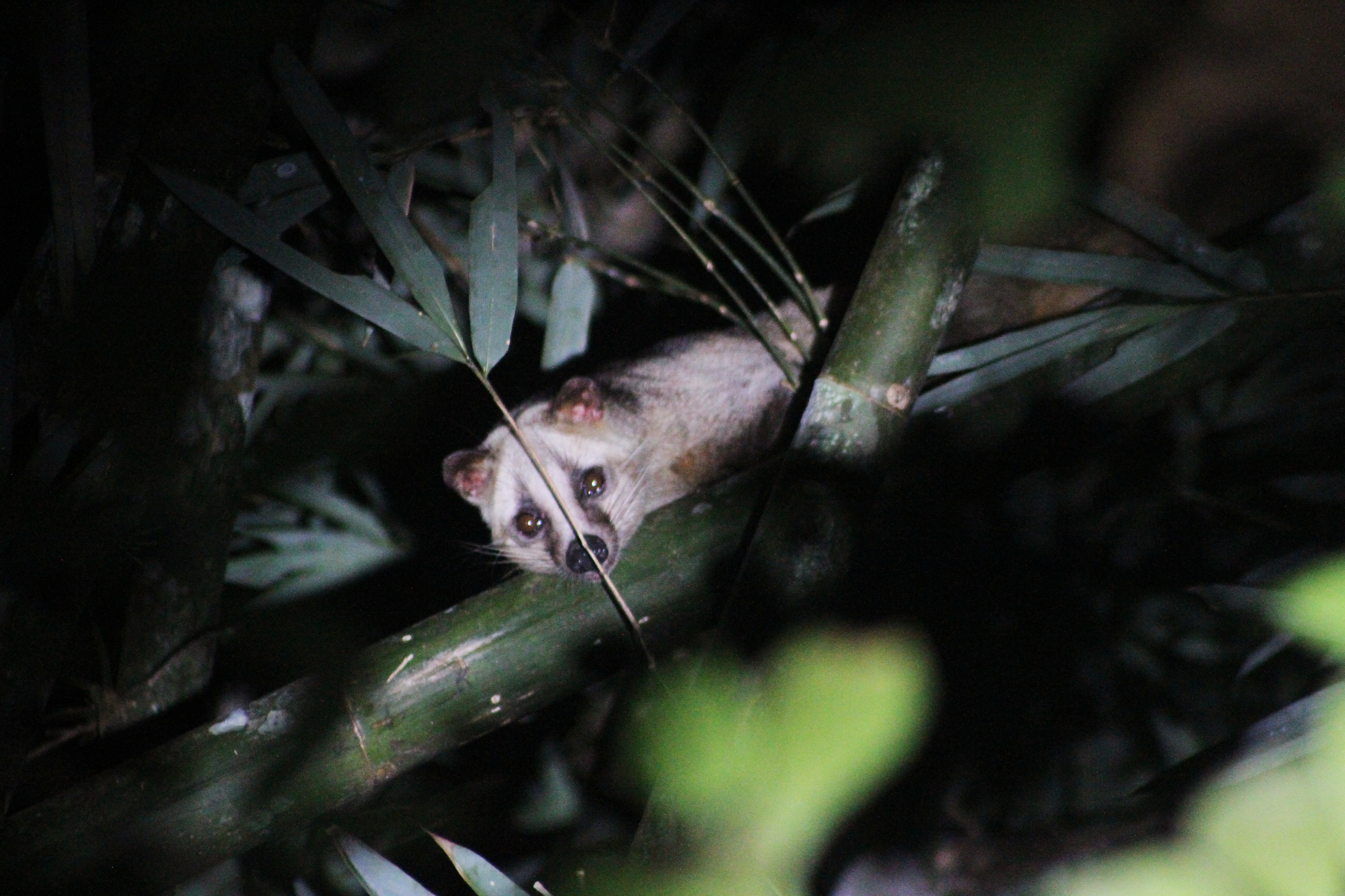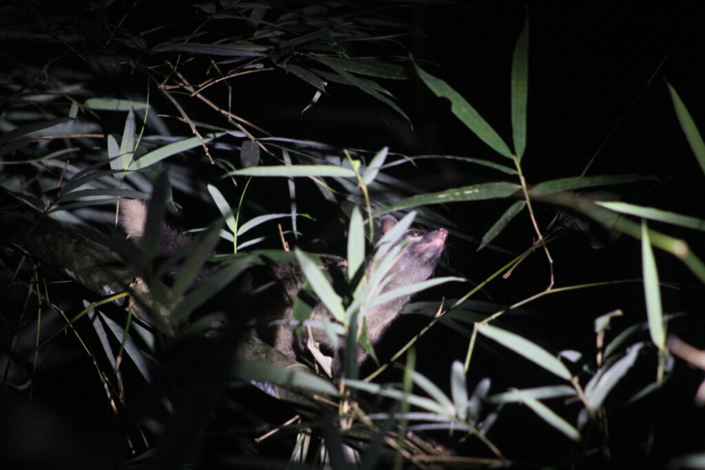 Green took our group down a side trail, which I didn’t know was “allowed” during the night safaris. It was cool to walk along the river edge. I think he did it for my benefit. I know that is great habitat for mangrove cat snakes and pythons. We didn’t see any of those guys but what we DID see was a civet cat!