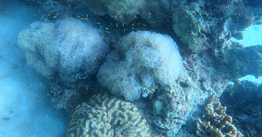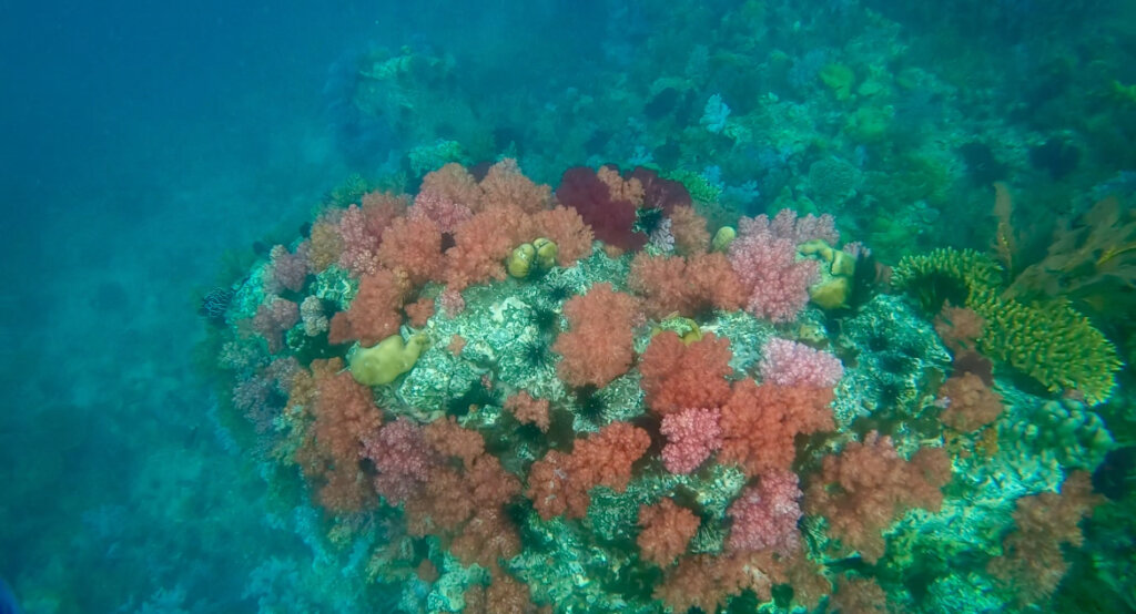 I had to swim for a little while before reaching dense patches of coral. I was pleased with the sea life. Lots of little fishies, a couple that I’d never seen before. There were also heaps of clams and oysters wedged into the coral. I even saw a small group of squid which was exciting. I’d only ever seen them once before, in Amed, Indonesia with my friend Luchi. That was right after my first eye injury.