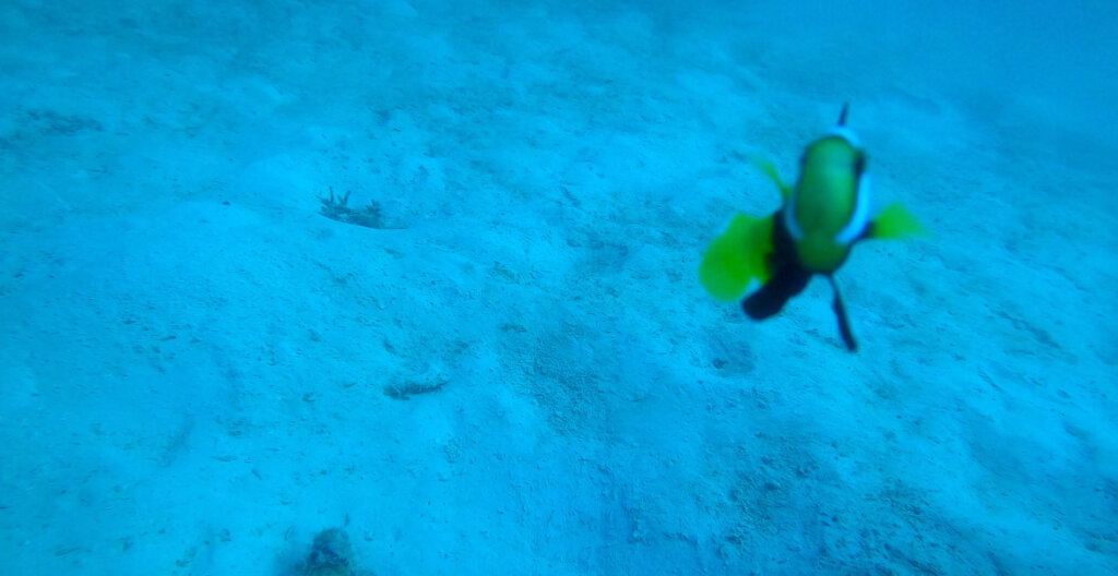 We also had a nemo fish attacking us. He actually bumped up against my guide’s head and then started charging my camera. L’il guy.