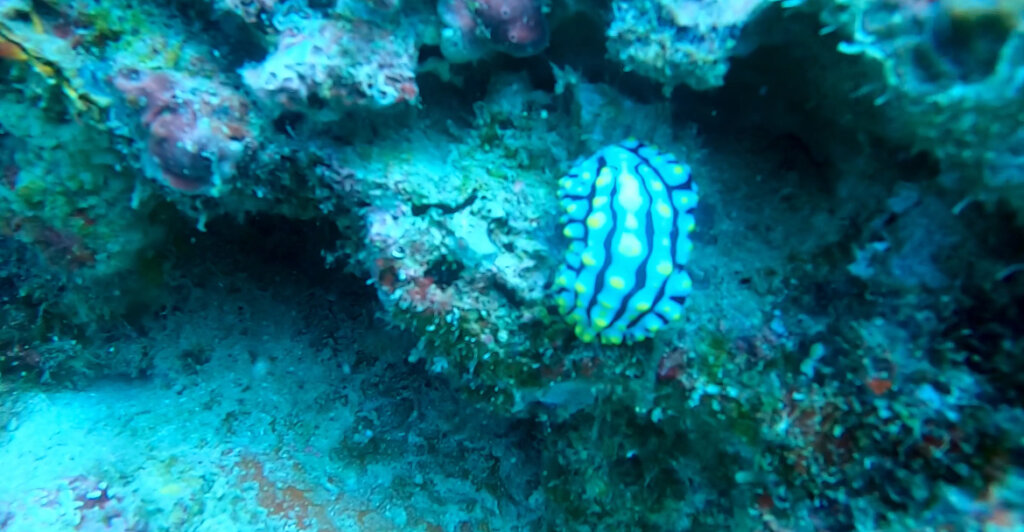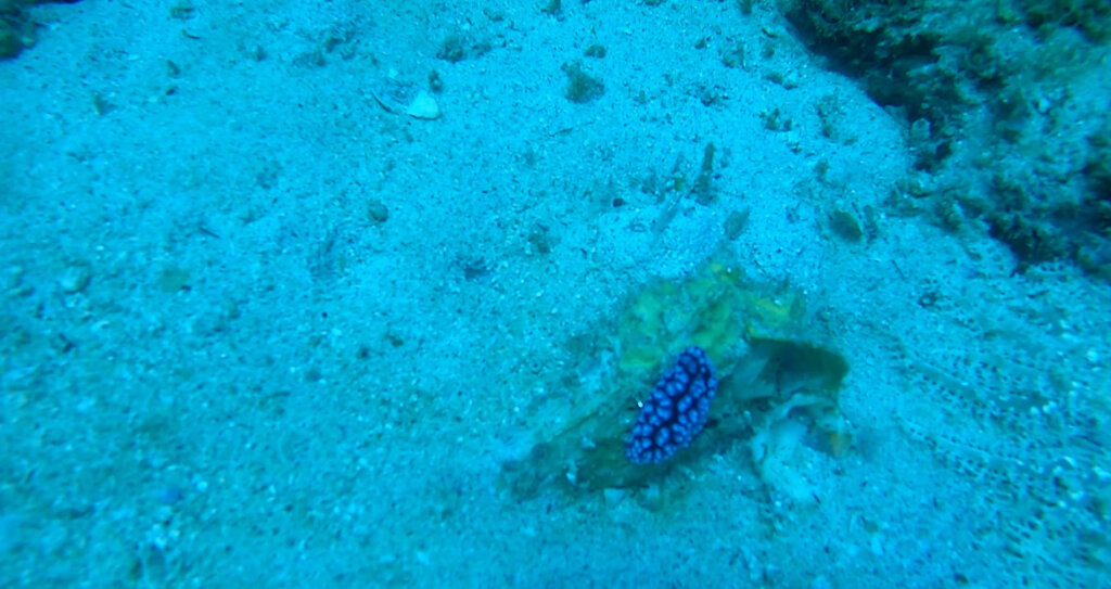 The first half of the dive, we were muck diving, which is cruising along the sandy bottom. Lots of weird, interesting creatures can be found while muck diving. But at first, I was like, “um… where’s the coral? Where are the fish?” instead, I encountered more nudibranchs than I’ve seen on any other dive before. Some of them were really incredible! My GoPro isn’t the best at filming them so apologies for blurry photos.