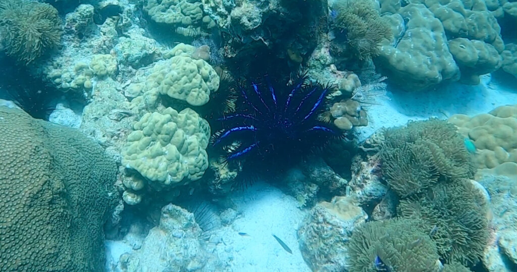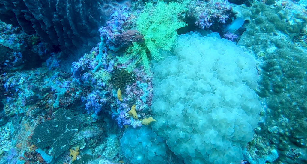 The second dive was very special for me because… well, it was my very first time seeing a seahorse in the wild. I’ve seen pipefish before which are very similar and in the same family, but never a proper seahorse. I’m so glad my guide spotted it! As I was swimming away, I almost accidentally slapped it with my fin. While I have about 28 dives under my belt now, I still don’t quite have my buoyancy down. I hope to improve it when I get my advanced certification. We saw more nudibranchs and some truly interesting coral which looked like gigantic fish eggs. I usually am not super impressed by coral but Koh Lipe has been changing my mind on that!