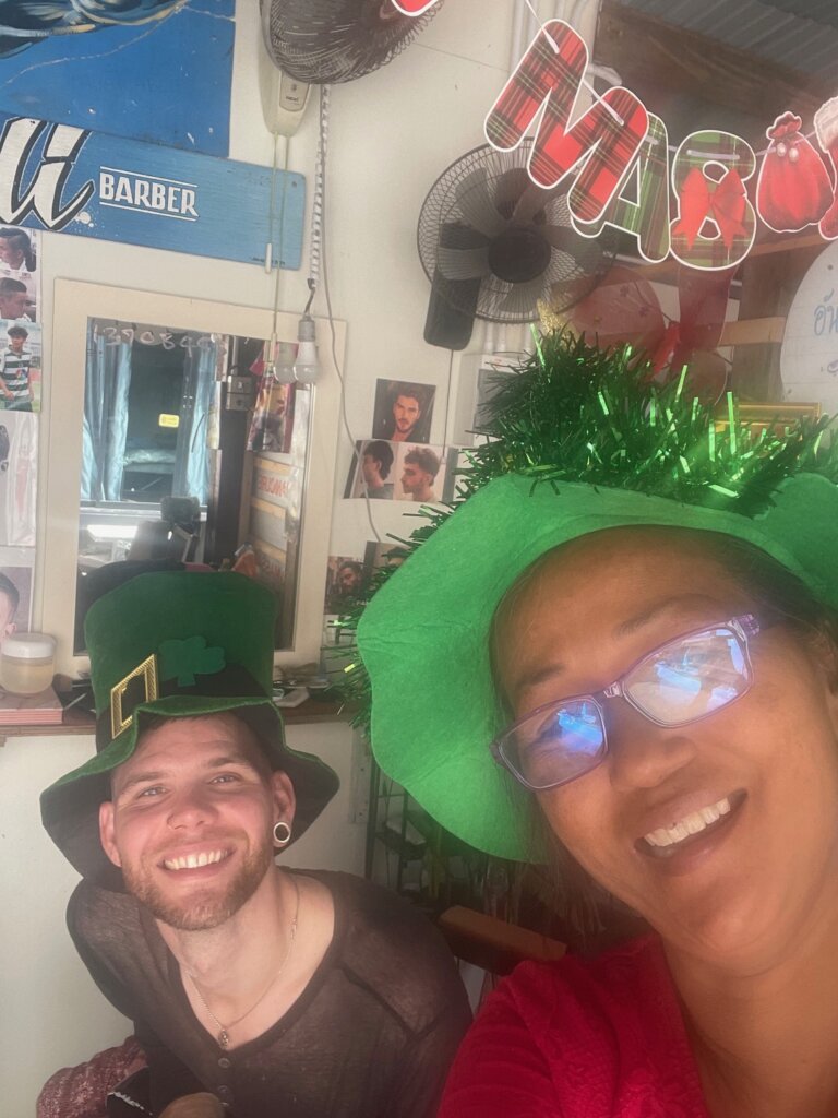 I got a hair cut and beard trim, too! Desperately needed. I had read reviews saying the barber lady was kind of rude. I could see by her tone at times how people could read her as such but she was very nice to me. And afterwards, she wanted to take photos of us in hats together hahaha. Cute.
