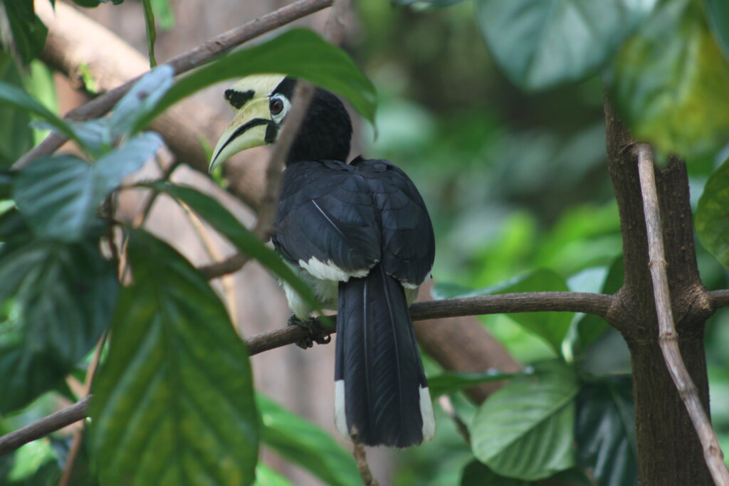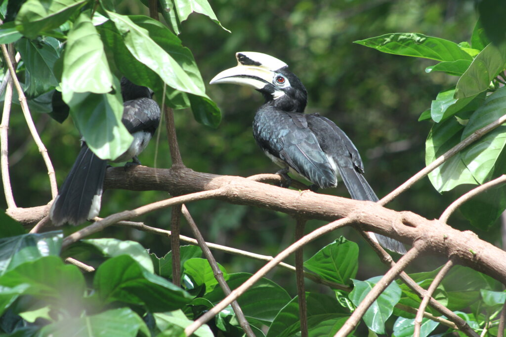 Out of the corner of my eye, I saw a dark shadow flying by behind some trees. Hmm, let’s go check that out. Sure enough, it was a hornbill – only partially obscured by tree branches.