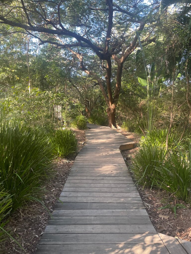 I took the ferry from Townsville to Magnetic Island (affectionately nicknamed Maggie Island) and then grabbed a bus to my accommodation from there. I was early so wasn’t able to check in yet and so decided to walk around, getting a lay of the land. My accommodation at Selina was really lovely. They have campsites, “glamping,” dorm rooms, and private rooms. It was a really great atmosphere. They have a boardwalk that goes around all the sites.