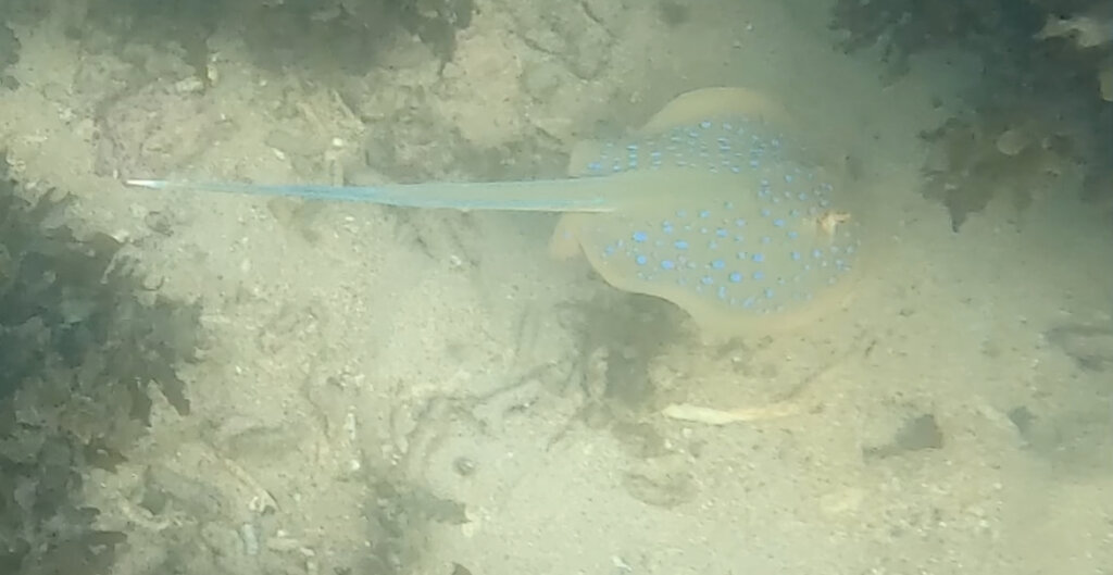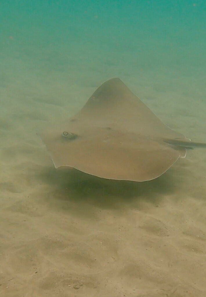 My third and final snorkel was the absolute best. I followed along the edge of the bay and something caught my eye. I could see its body, but its head was masked in a tangle of seagrass. What is that thing – some kind of stingray?