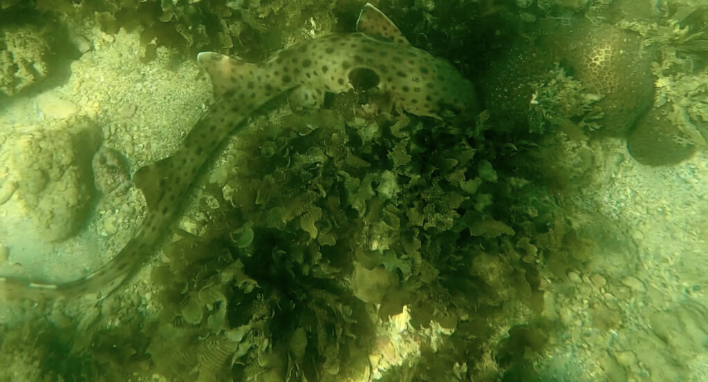 As the seagrass started to sway in the current, I was able to get a closer look. A small shark! Never have I been so close to a shark before and this one was absolutely adorable. I looked it up later and was able to identify it as an epaulette shark.
