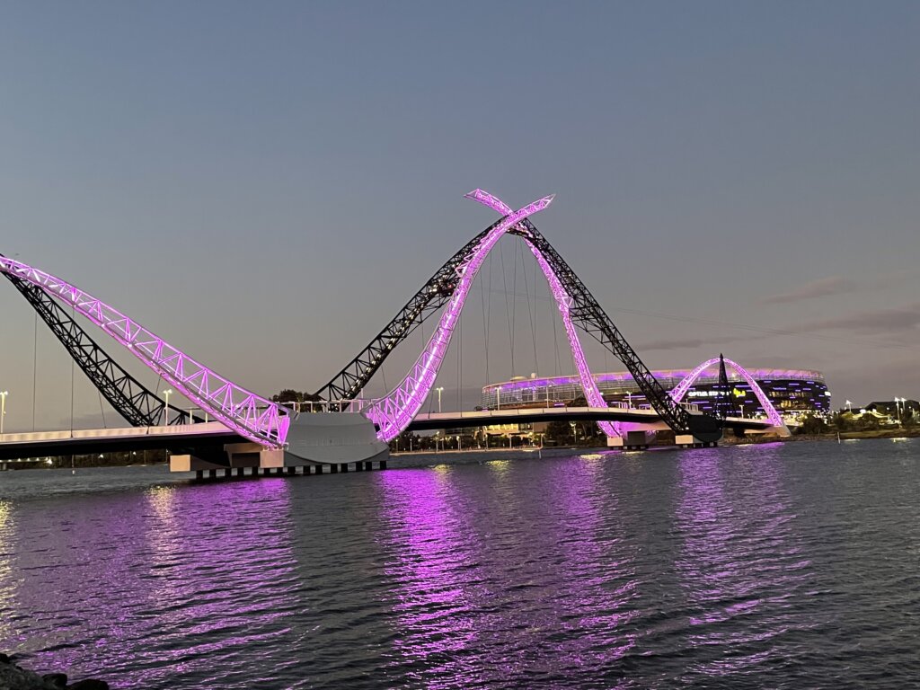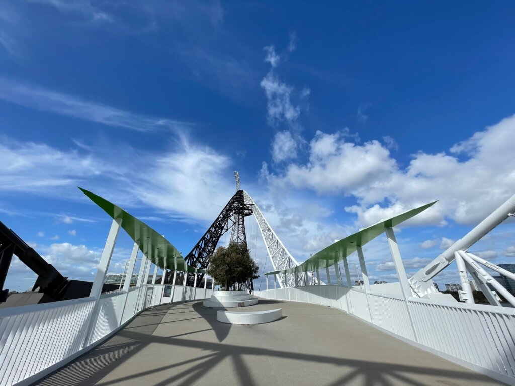 I continued walking along and crossed the Matagarup Bridge. The evening I arrived in Perth, I saw this bridge and thought, “how cool looking – it looks like tentacles.” It was neat to finally walk along it. It was my first impression of Perth, and I hadn’t been to it yet.
