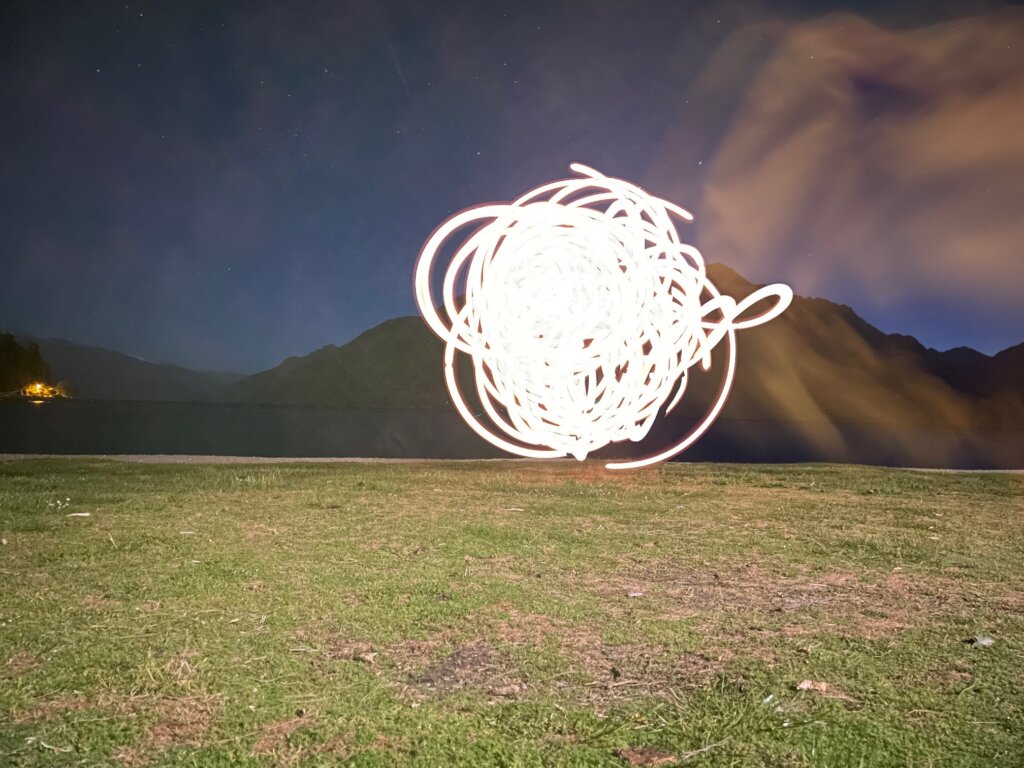 The above picture is Jose dancing with his poi – this is a Māori form of dancing – it is a ball on a cord but Jose had light-up balls.