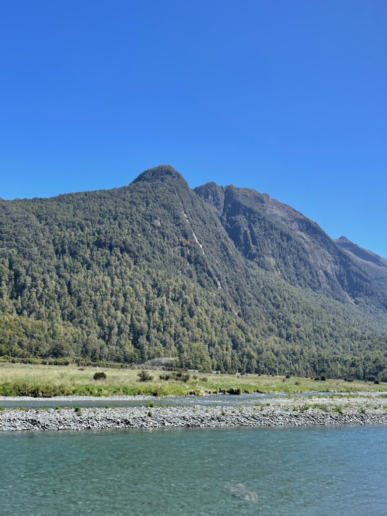 I didn’t realize along the way that we would actually be stopping at a few sightseeing destinations – what a win! Our first stop was mostly a toilet/coffee stop in Te Anau which was sort of the start of Fjordland National Park. I walked down to the water and saw the Australian crested grebe incredibly close to shore!