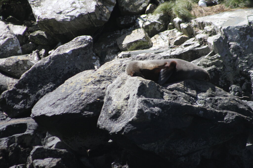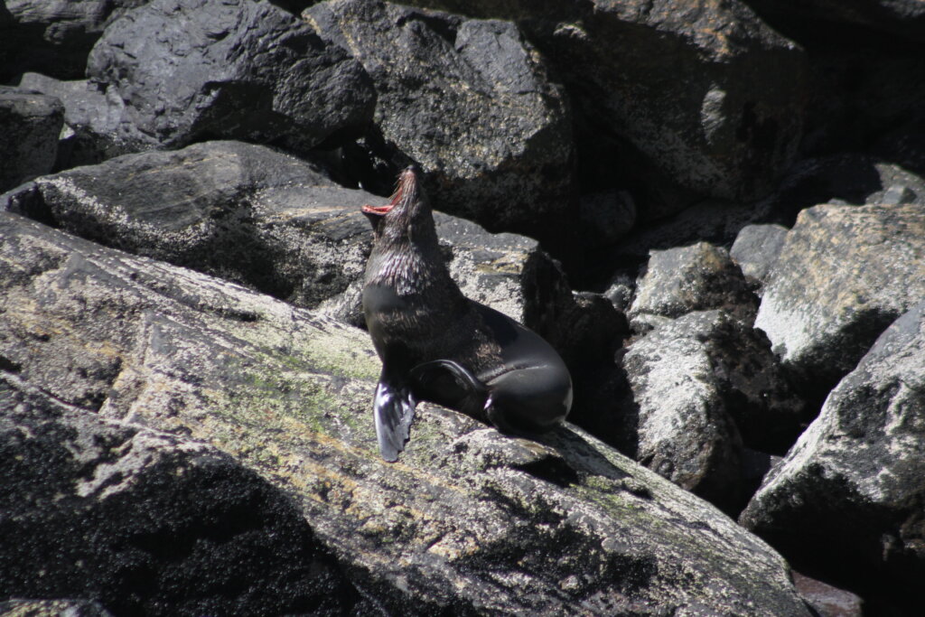 Most of the two hour cruise, we were taking in the beautiful views. I kept my eyes out for dolphins, but instead I got a few fur seals (maybe a sea lion?) at the halfway point. Basking on rocks, as usual. I think the one on the left is a fur seal but the one on the right is a sea lion.