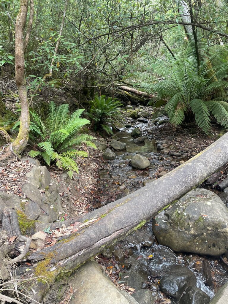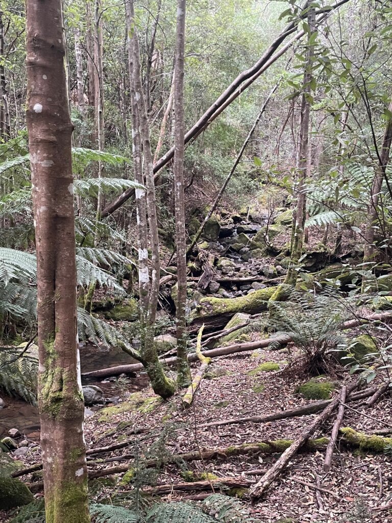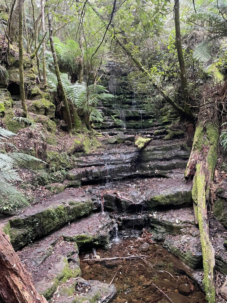 I was hiking along the Cascades Trail which goes up to Kunanyi / Mount Wellington, with the end of my hike being at a cute, little waterfall called Myrtle Gully Falls. I didn’t want to hike up to the top of the mountain because it’s basically a five hour commitment one way, which makes for a long day. The waterfall seemed like a good point to turn back and the views along the way were really cool. It was a lush forest with plenty of ferns and moss.