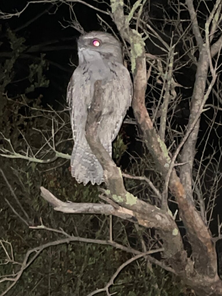 We also saw a tawny frogmouth, which is this bird that looks like a small owl with a really weird beak. I wasn’t able to snap a picture that night, but I did see one on a walk the other night and got a picture then! I wish I could see it during the daytime, because they are so goofy looking.