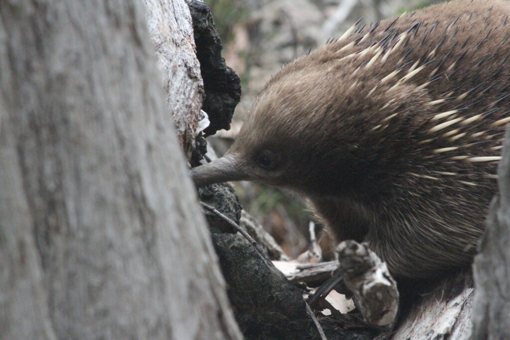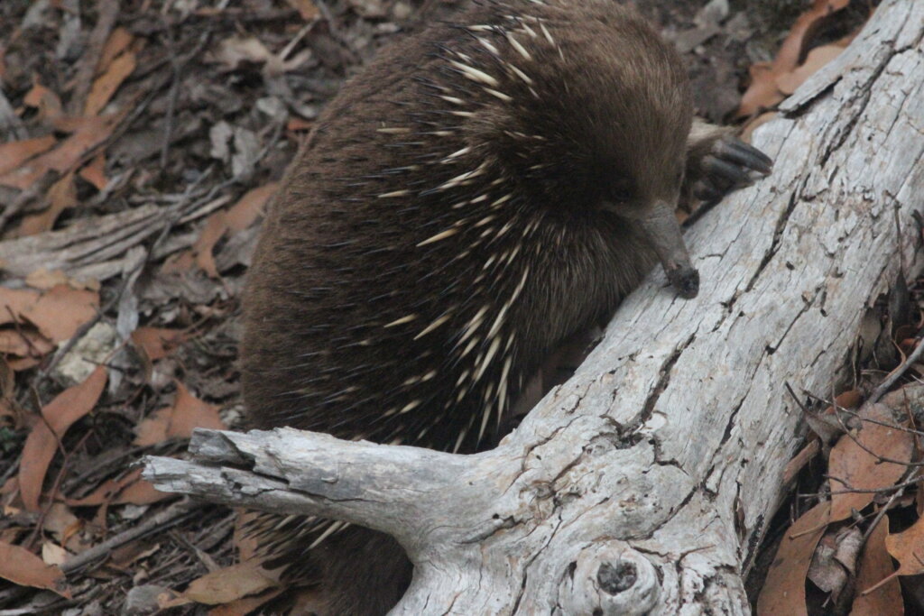 The thing with echidnas is that they resemble so much of the Australian foliage – kind of spiky, short little shrubs. At times, I’ll even see a large stone in the ground and think “is that an echidna?” They’re easy to mistake. So, when I saw a big hump along a fallen tree, I didn’t think much of it… until I noticed it was moving.