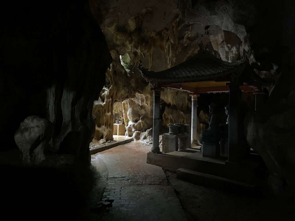 The entrance to the pagoda was lovely – a small bridge leading over a pond filled with lily pads. I continued along and made it to another part of the pagoda structure. Now, I’d always though pagodas were the tall structures like I’d seen the day before – multi-tiered shrines, essentially. Bích Động was NOT that and this is when I learned pagodas aren’t necessarily multi-tiered structures. They are simply sacred buildings but they do NOT need to be multi-tiered. The more you know.