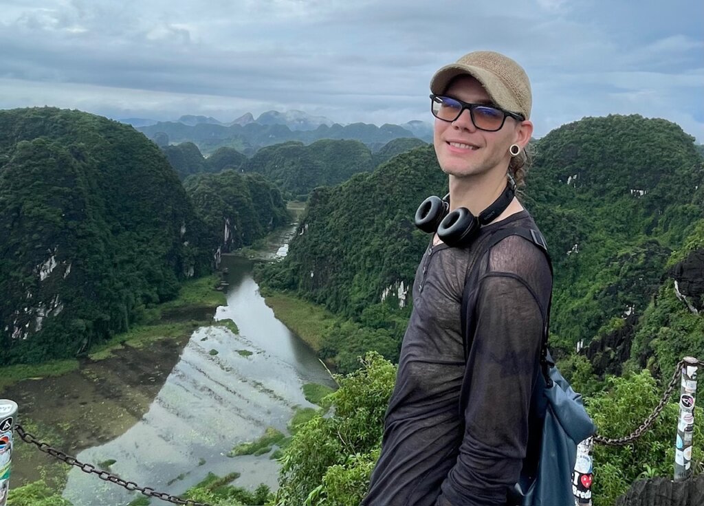 After a few moments, I descended and went up to the second viewpoint. This one was the famous one – it had a view of the Tam Cốc river below, where people were taking boat cruises. It was cool to see them down below, admiring the scenery. That had been me just a day prior, although I was in Tràng An instead.