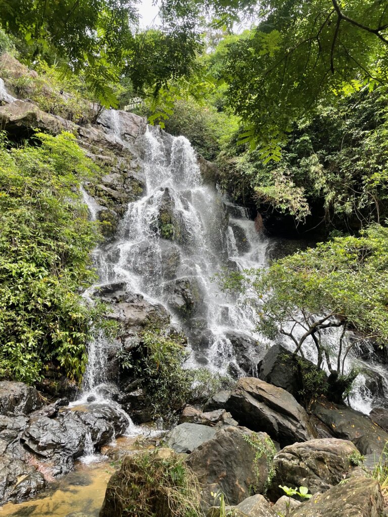 After Paradise Cave, I continued driving along the loop to get to the botanical gardens. I parked my scooter, had lunch, and then ventured inside. I was unsure whether I should do the whole trail or just visit the waterfalls. I was feeling a little tired, so I decided to only stop at the waterfall. The walk was quick. Before long, I was holding onto a rope and stepping from boulder to boulder to get closer to the waterfall. Really nice! No Bản Giốc… but pretty nice haha.