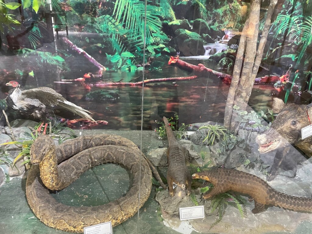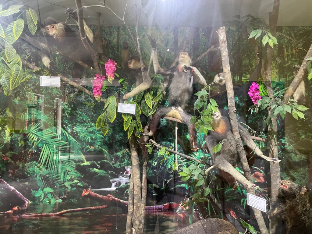 I was hoping to see wildlife at the botanical gardens. The day before, I’d seen a “display house” at the start of the trial that had the craziest taxidermy of local animals I’d ever seen. There were langurs, pangolin, wild boar, reticulated pythons. They had jars of snakes, geckos, and other creatures in formaldehyde. Super bizarre. But seeing that display house made me want to come back to look for wildlife.