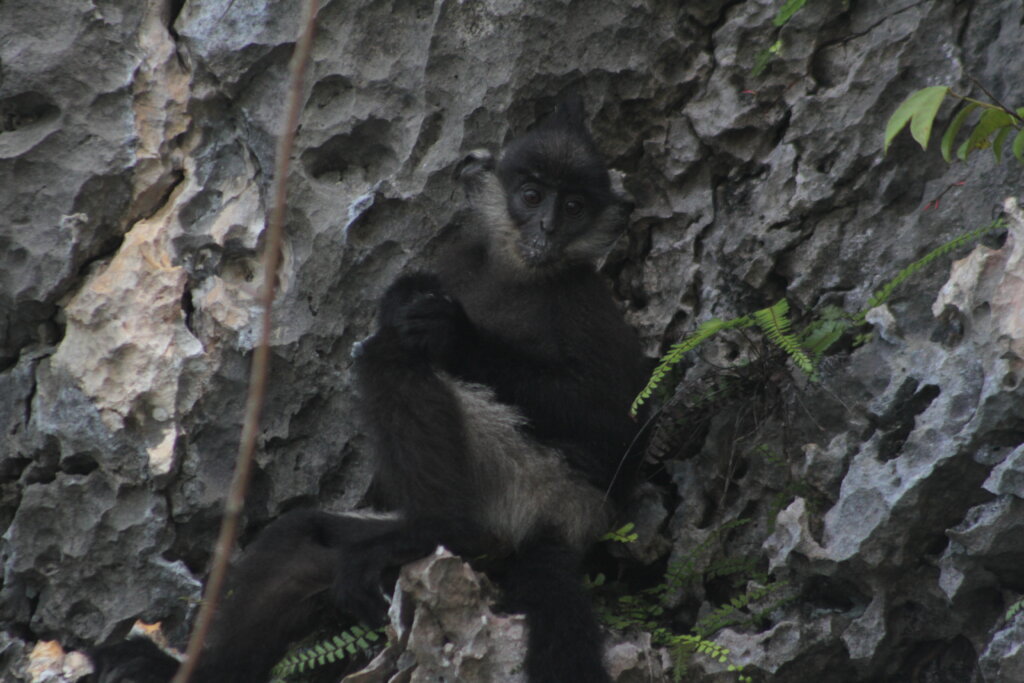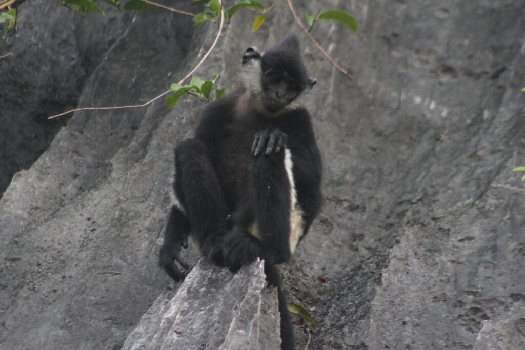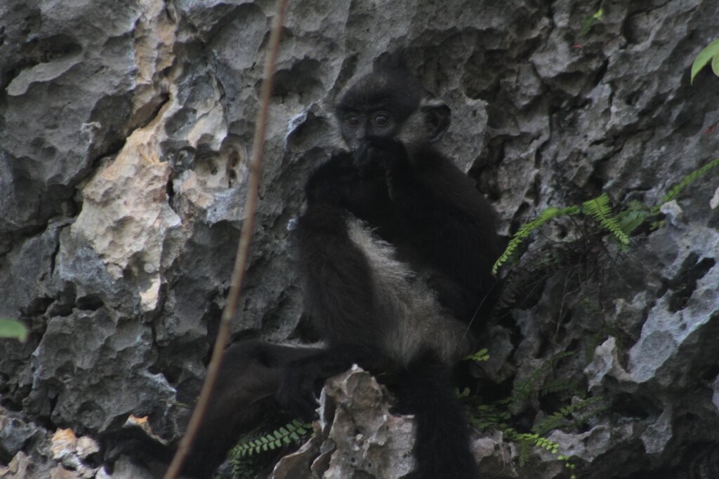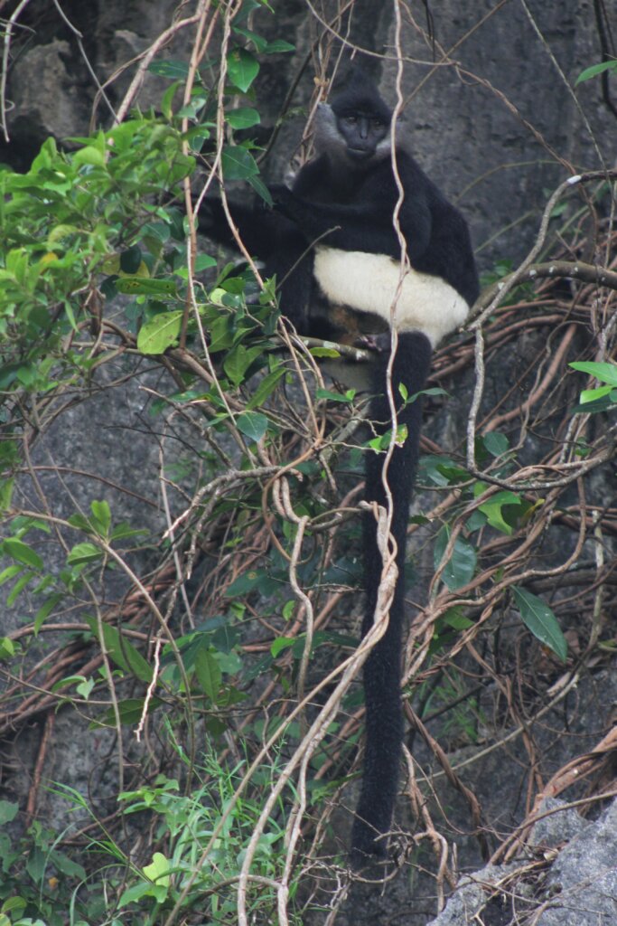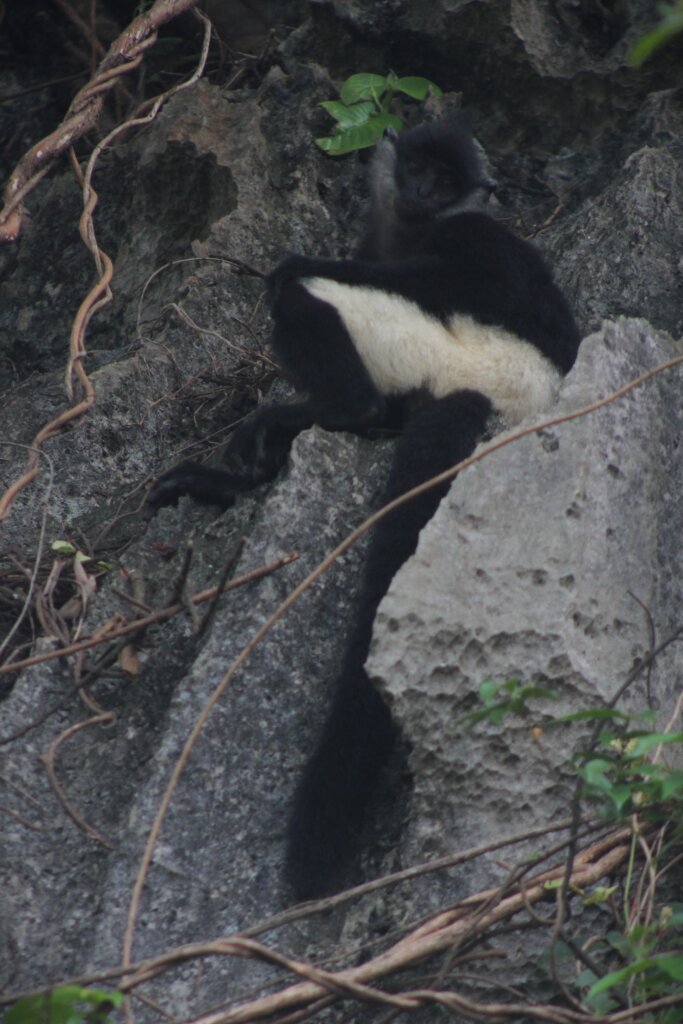 Why did I have to go on a boat to try to see the langurs? The boat route passes next to limestone cliffs, which is the habitat of the Delacour’s langurs. These cliffs are STEEP but somehow, these monkeys live their lives there.