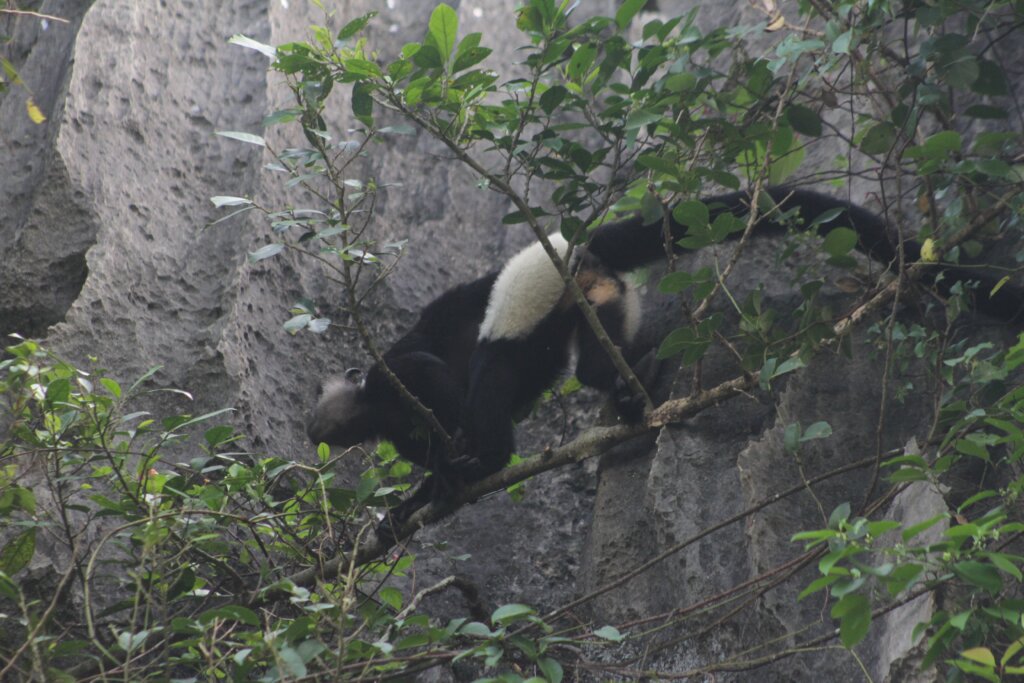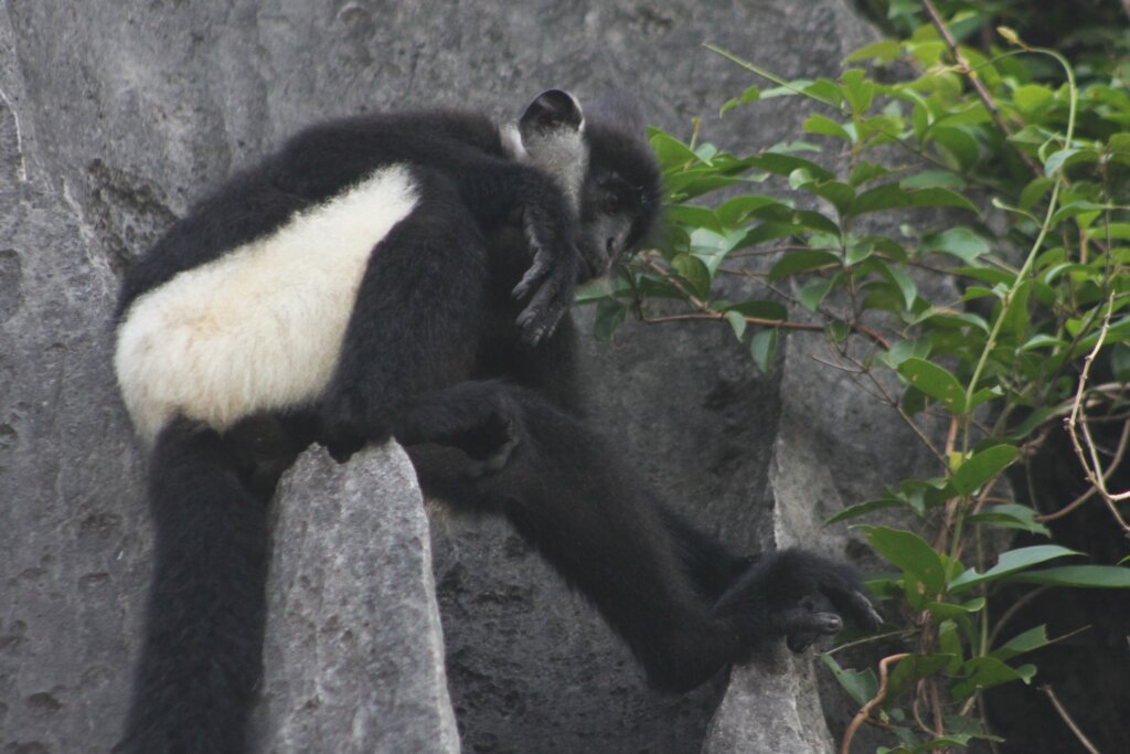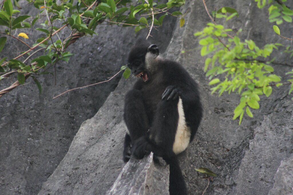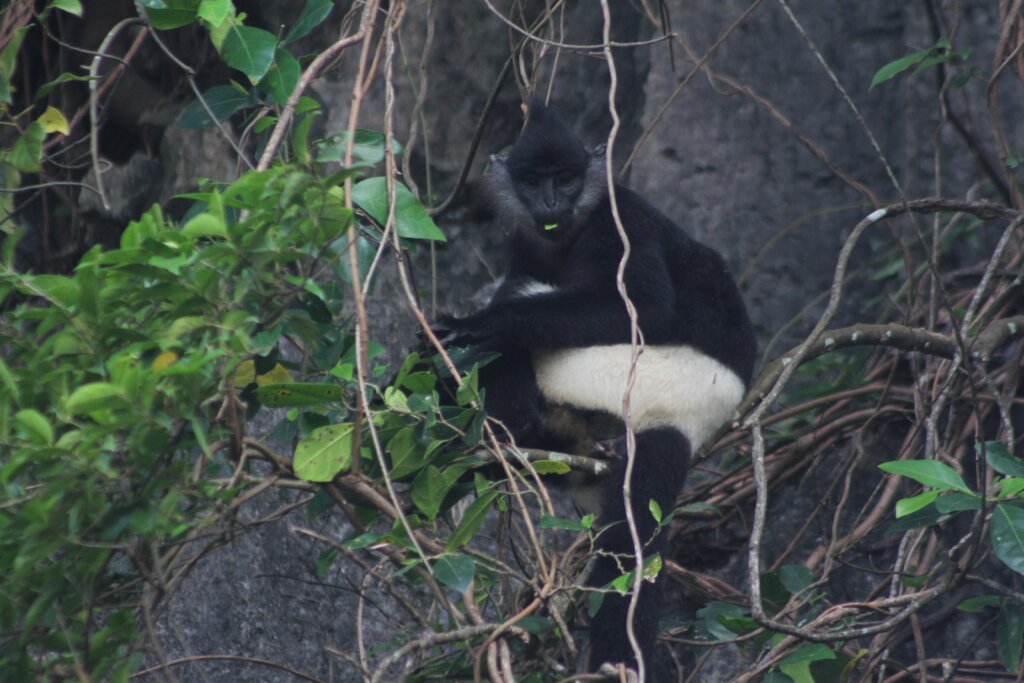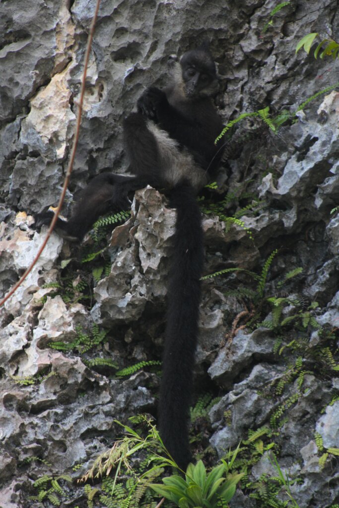 Why did I have to go on a boat to try to see the langurs? The boat route passes next to limestone cliffs, which is the habitat of the Delacour’s langurs. These cliffs are STEEP but somehow, these monkeys live their lives there.