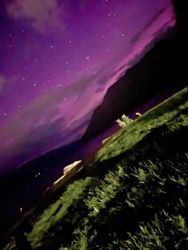 Still – to capture a picture (albeit crappy… I’m going to buy a phone tripod so hopefully that helps) of the glow from a distant aurora was really cool! In the future, when activity is very strong, I’m going to go to Aurora Point and have a look. Hopefully, I’ll have some really incredible displays to witness in the coming months. Fingers crossed!