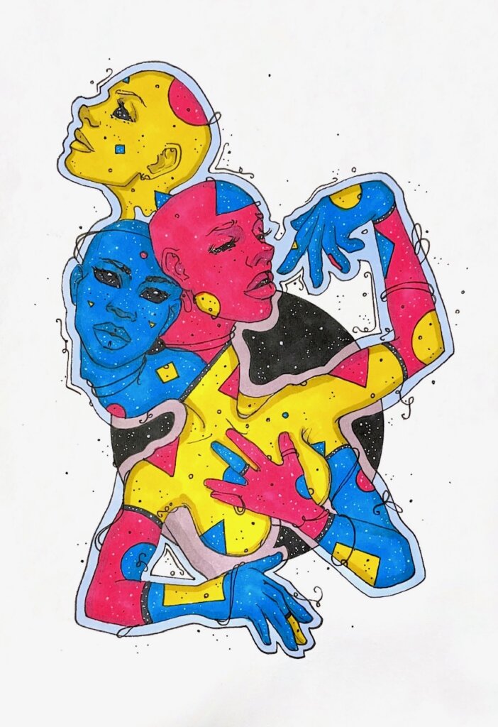 Trying something a little new. Shapes on skin instead of the trippy pattern I’ve been doing for ages. I like it! We’ll see where it goes.