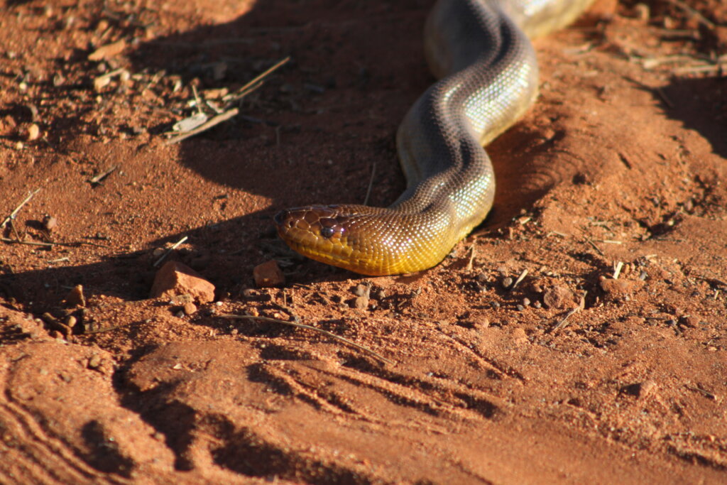 Three: It had been some time since I’d seen a snake at this point. In Yulara, my friend Steve and I were driving out of town to watch the sun set over Kata-Tjuta. A small crowd was forming as three guys were watching a snake catcher put a woma python into a bin.