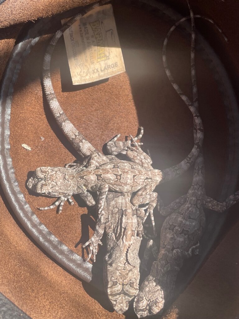 Frilled necks were a sort of obsession for me during my time in Darwin.  I had forgotten they existed until arriving in Darwin and seeing them became an absolute mission for me.  I… HAD… to find one!  I joined a Facebook group for Northern Territory Naturalists and saw some people had posted recent sightings.  I asked the group where the best spots were to try and find them and was met with many answers.  On days where I wasn’t going hiking somewhere, I would walk around the northern suburbs of Darwin, looking for these frillies.  Many days went by and I hadn’t seen anything.  Well…  SO many lizards, but no frilled-neck lizards.  And then one day, I was passing a tree and spotted my first baby.  I could not believe it!  I ended up seeing five different frillies while in Darwin.  None of them raised their frills at me, but it was still so incredible to see them.  They are beautiful lizards.  My favorite sighting was when I happened to run into someone from the Facebook group who had a frilly sitting atop his son’s friends hat.  And then they found two more within five minutes!  I couldn’t stop laughing – it was so bizarre.  After spending so much time looking for the lizards, it was like an overdose of frillies.  I would like to return to Darwin in the wet months one day to try and spot the adult frillies.  They are a lot more active in the wet months. It would be incredible to see the thunderstorms of the Northern Territory, too. They are supposedly legendary.