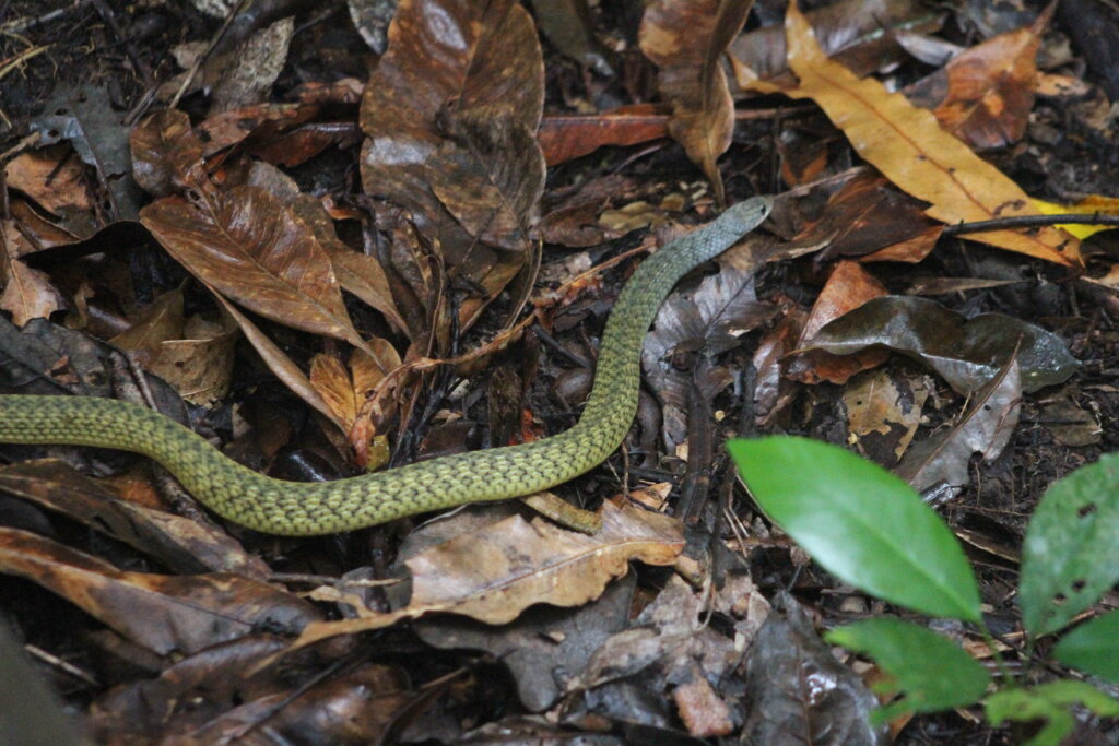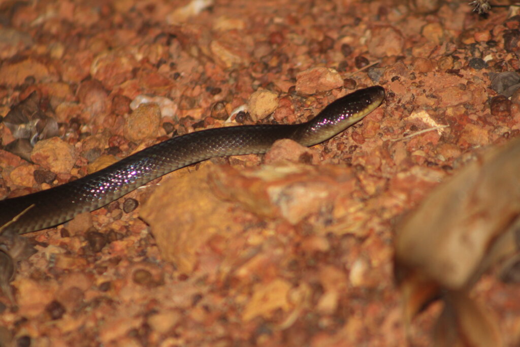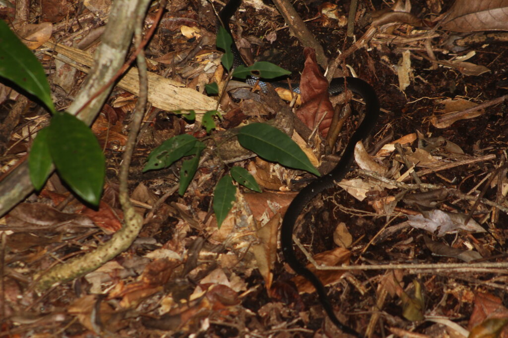 Six: In Cape Tribulation, I would frequently walk along a boardwalk through the rainforest to look for snakes and spiders. Walking at night was scary for me at first but I started to get the hang of it. One night, I was walking very slowly and spotted a slatey grey as it moved through the rainforest.