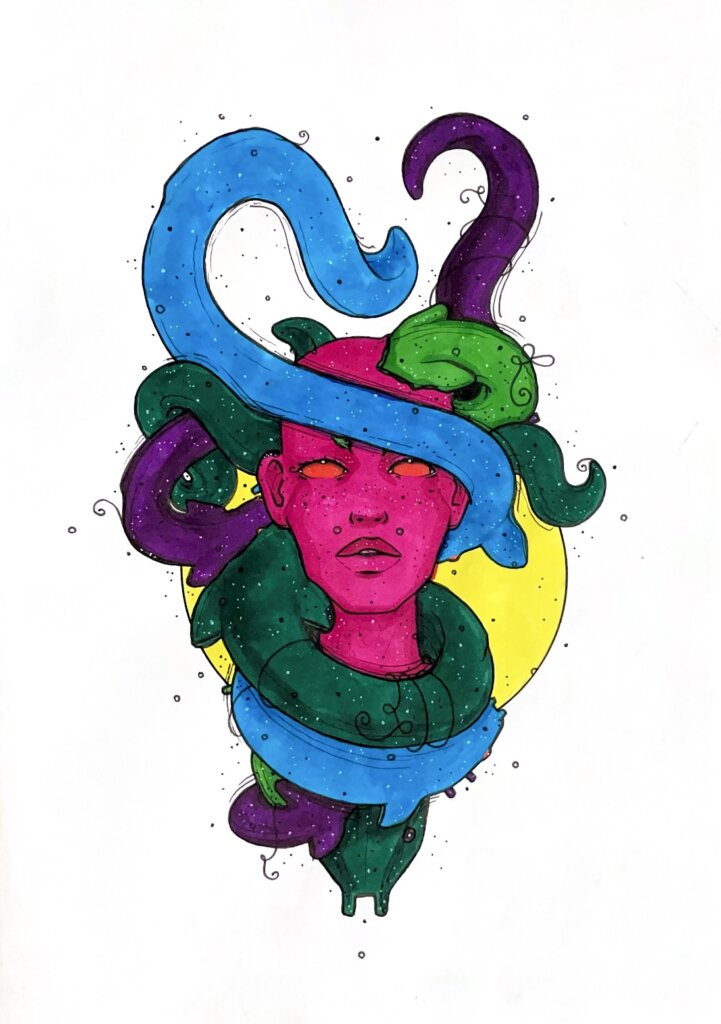 This is my favorite drawing of perhaps the entire year. When making art, I inevitably make mistakes. I may be happy with 80%, but there is 20% I know could be better, too. It’s the same with this drawing as well, and this probably always will be the case. BUT there are times I learn things, and this was one of them. When I’m really pleased with a piece, I’ll look at it over and over again, admiring it. Sometimes I’m in awe that I could create such a thing. I know that sounds silly but years ago, while I liked drawing, I didn’t feel particularly talented per se. It’s always a cool feeling to admire and be proud of my own work. The inspiration for this piece comes from a book by James Prosek called Eels. It is fascinating. A book about how important eels have been in different cultures throughout time, different mythologies and lore, etc. A big part of it was the eels in Aotearoa New Zealand. There was thought to be a “taniwha,” which is sort of a deity. The taniwha was in the body of an eel but often had an unusual characteristic – red eyes, or its body was white, or it was massive in size, etc.