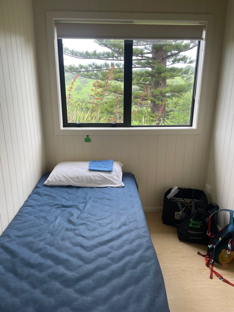 There were only a few of us staying on the island – myself and then a mother with maybe four kids. As we got off the boat, we were ushered into a building where we were given a short briefing upon arrival. Sue, one of the rangers on the island, gave me a ride up to my accommodation. She then showed me around the space and to my room. I couldn’t believe it. I honestly was expecting a DoC hut, basically just a small wooden building without even a toilet. Nope, this was a stellar spot! It had a living room, a kitchen with all the appliances, a massive dining table, a shower with warm water, beautiful views, etc. What a steal! I’m so glad I was able to stay there. My jaw was nearly dropping to the floor.