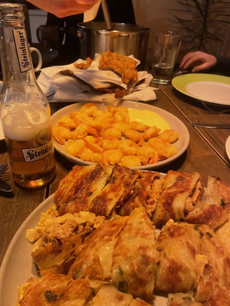 Earlier in the week, mi amiguito Juanito invited me over to his place along with some others for dinner. The invite was rather last minute and I had some errands to run after work. Once finished, I drove over to his place where I was met by Juanito, Rose, Fabian, Armin, and Iris. They were all making food that was traditional to their country. I can’t remember the name of the meals, but I do remember the dessert Rose & Fabian made was called a Victorian Spongecake. YUM. All the food was so yummy. I didn’t have time (or space, really) to cook, so I brought chips, cheese, crackers, and kit kat bars. I figured junk food counts as traditional American food, so…