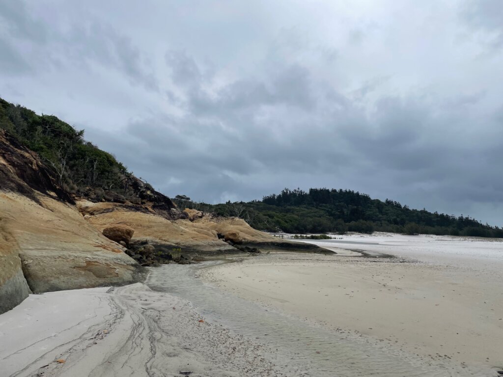 I took the Greyhound from Magnetic Island to Airlie Beach. I had two days to explore the area but unfortunately it ended up being very rainy both days. The first day was fine – that’s when I wrote up last week’s blog post, but I intended to go exploring on my second day. Unfortunately, as soon as I got to the Honeyeater Lookout Trail, it started pouring rain. The trail was already muddy from the night before so I decided to just head back to my hostel. I spent the day hanging out. At one point, I did put on my flip flops and rain jacket and went for a walk along the esplanade. Rain poured down on me but with my rain jacket, it didn’t much matter.