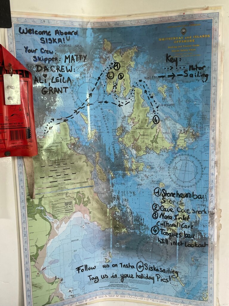 We left the marina at 8.30am. I don’t think I’ve ever spent a night on a yacht before but I had slept overnight on a boat quite recently on the Outer Reef. I was ready for it… but this was a much smaller boat and our “rooms” were basically little cubbies carved into the wall.