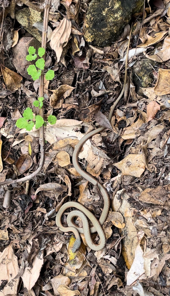 I was able to share the sighting with the others because moments after spotting it, the rest of the guests slowly started shuffling down the trail. Everyone seemed excited and they were curious to know what it was. I can’t believe it laid still as all these people walked past it. Someone said “is it dead?” but it wasn’t – I saw its head move side to side at one point, examining a bug.