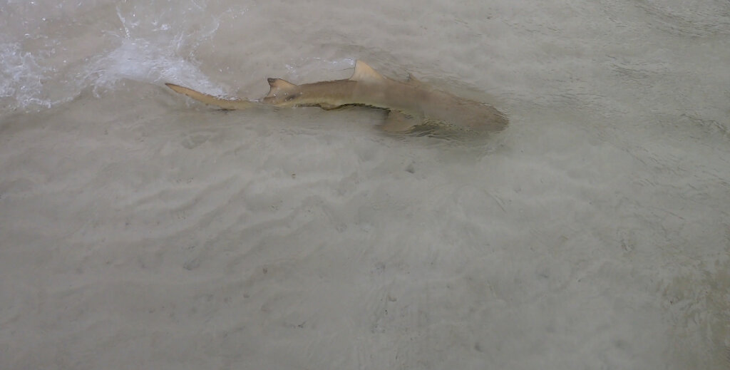 One of the other guests called out, “shark!” and there it was… a baby lemon shark, swimming peacefully along. The shark (or maybe there were multiple) passed by us a few times through our hours at the beach. At one point, it got spooked because it had entered too shallow of water and it ended up ZIPPING between me and one other guy. I started laughing because it was the cutest thing ever. It was such a small shark – there was no way it was going to bite me, but some people seemed kind of anxious about the shark.
